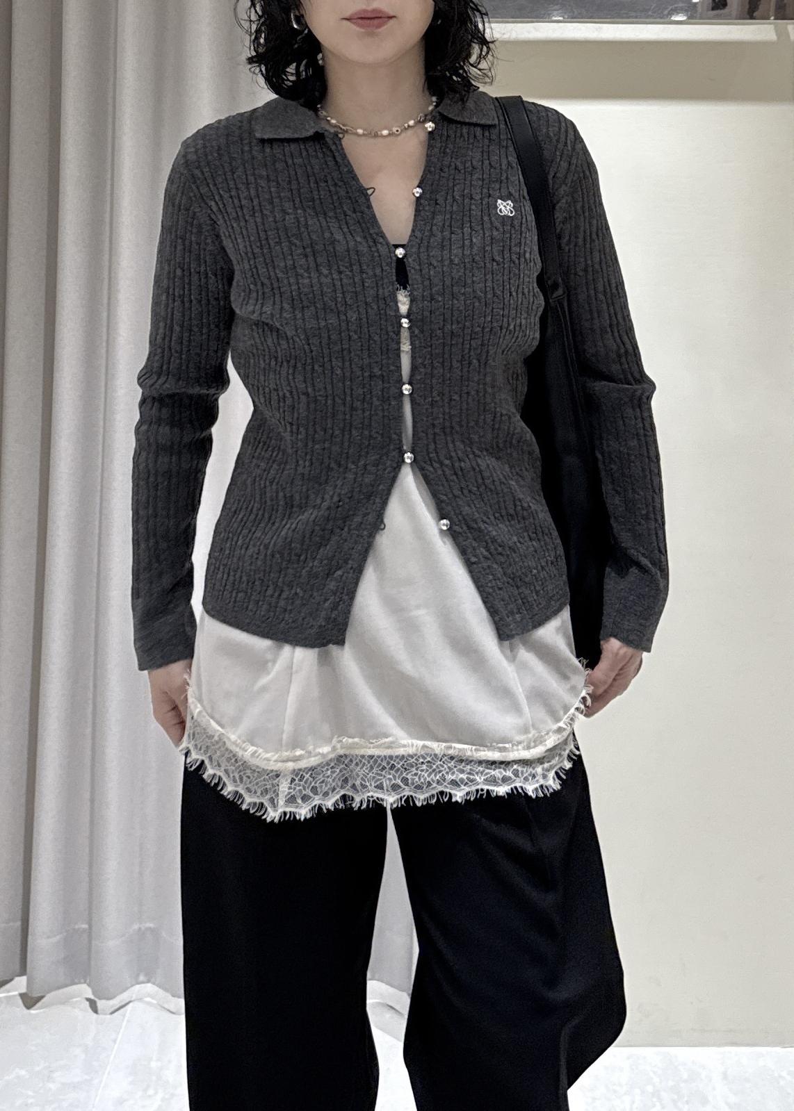 ポロ衿ケーブルカーディガン
