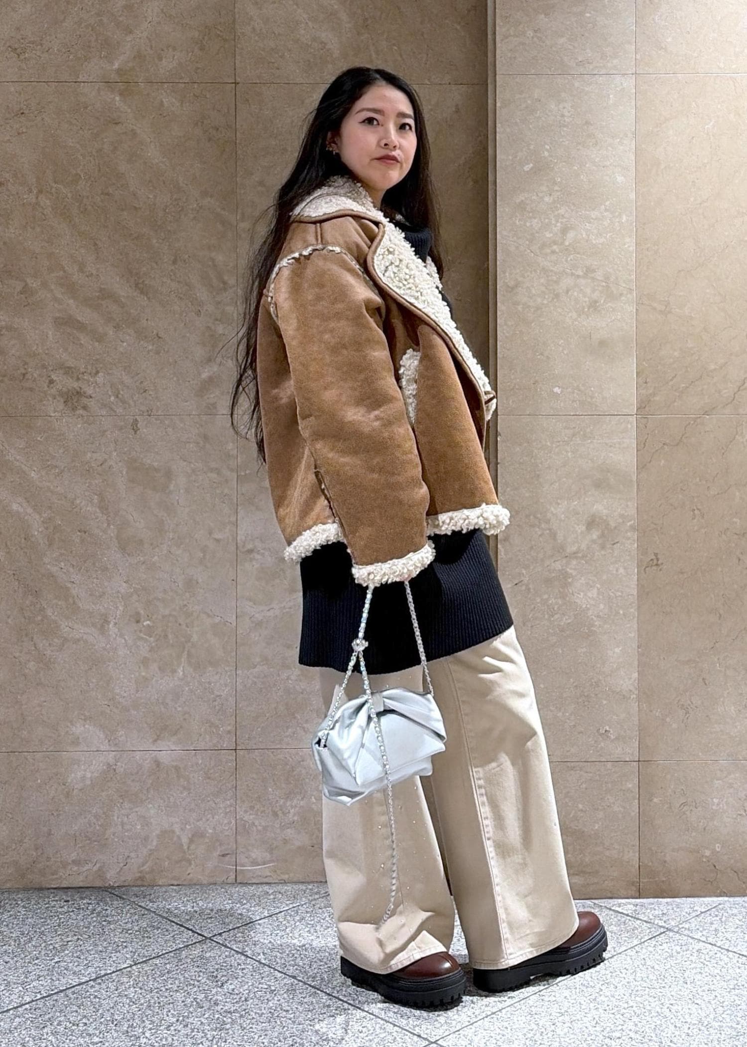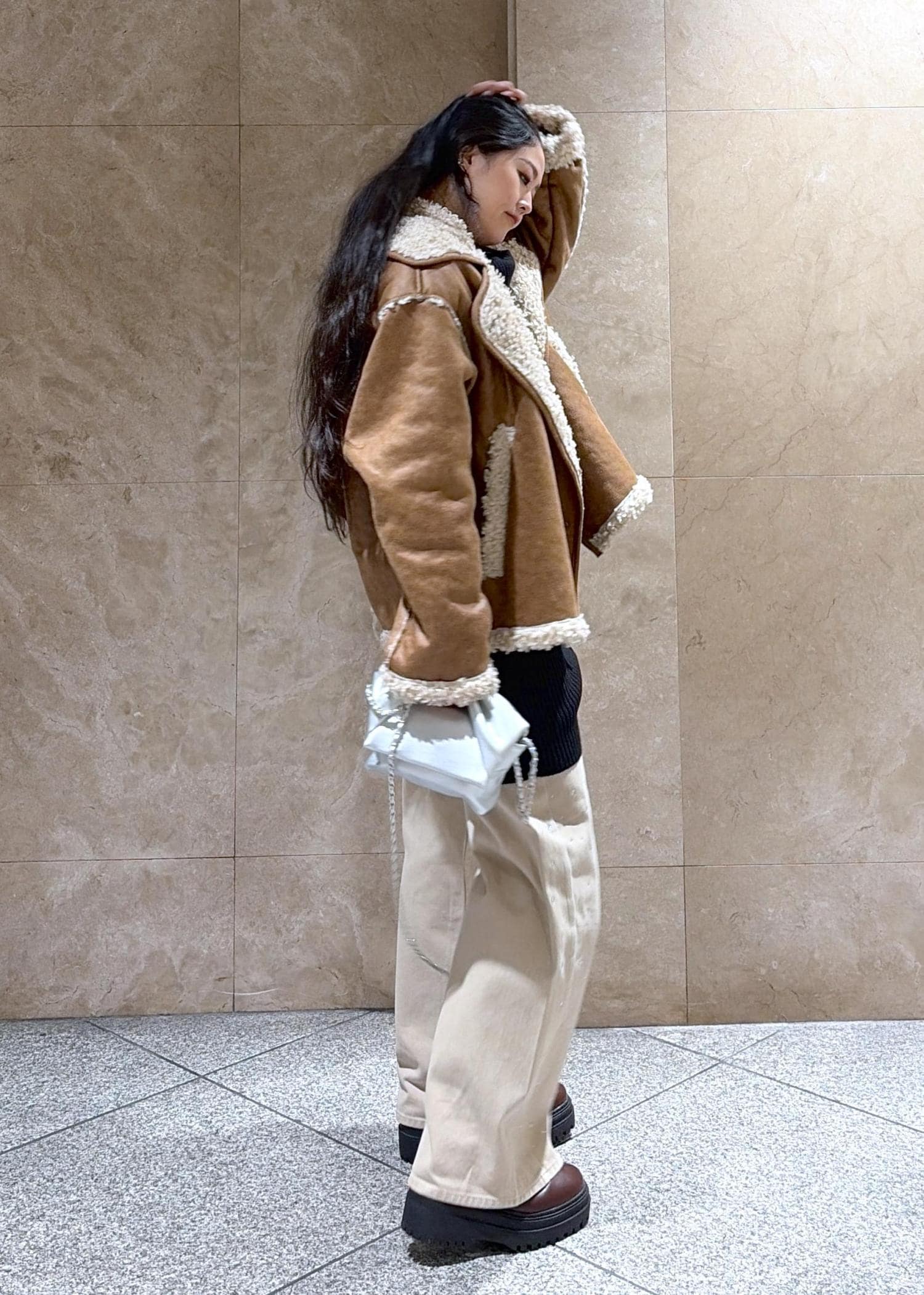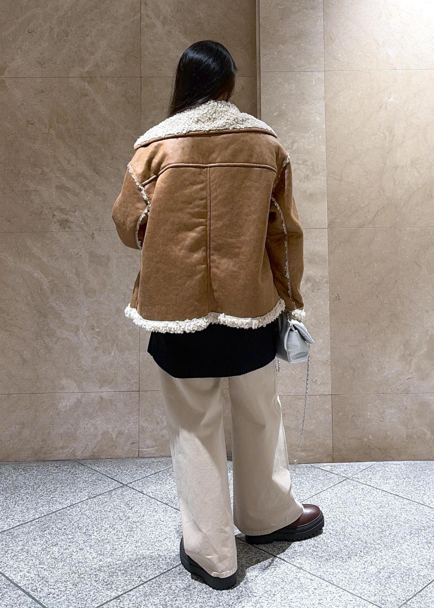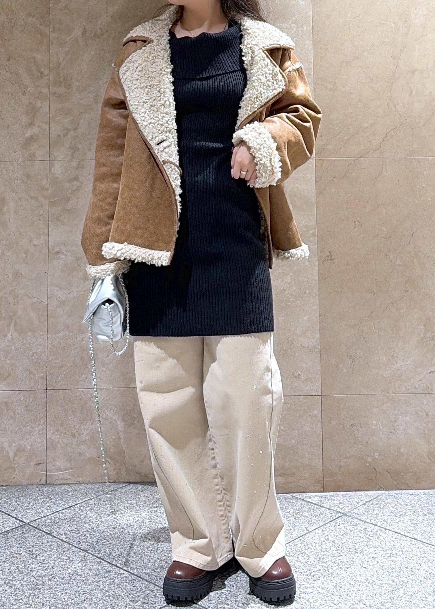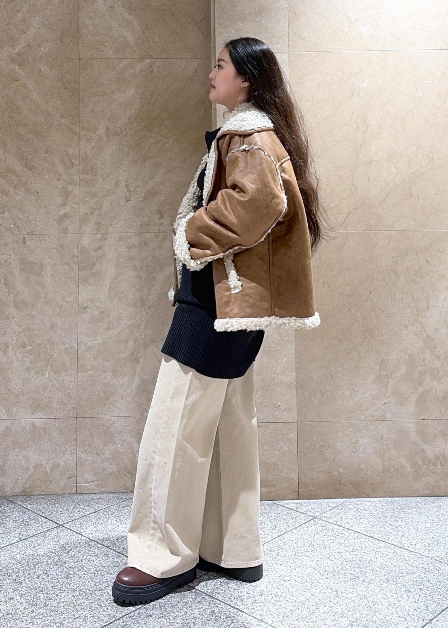 VISフェイクムートンジャケットキャメル / F¥11,264レビュー少しビンテージ感が出て、かっこよく着こなせるな(っ ॑꒳ ॑c)と感じました、丈感も大きすぎず、中にニットを仕込んでもキツくないダボッと感です◎