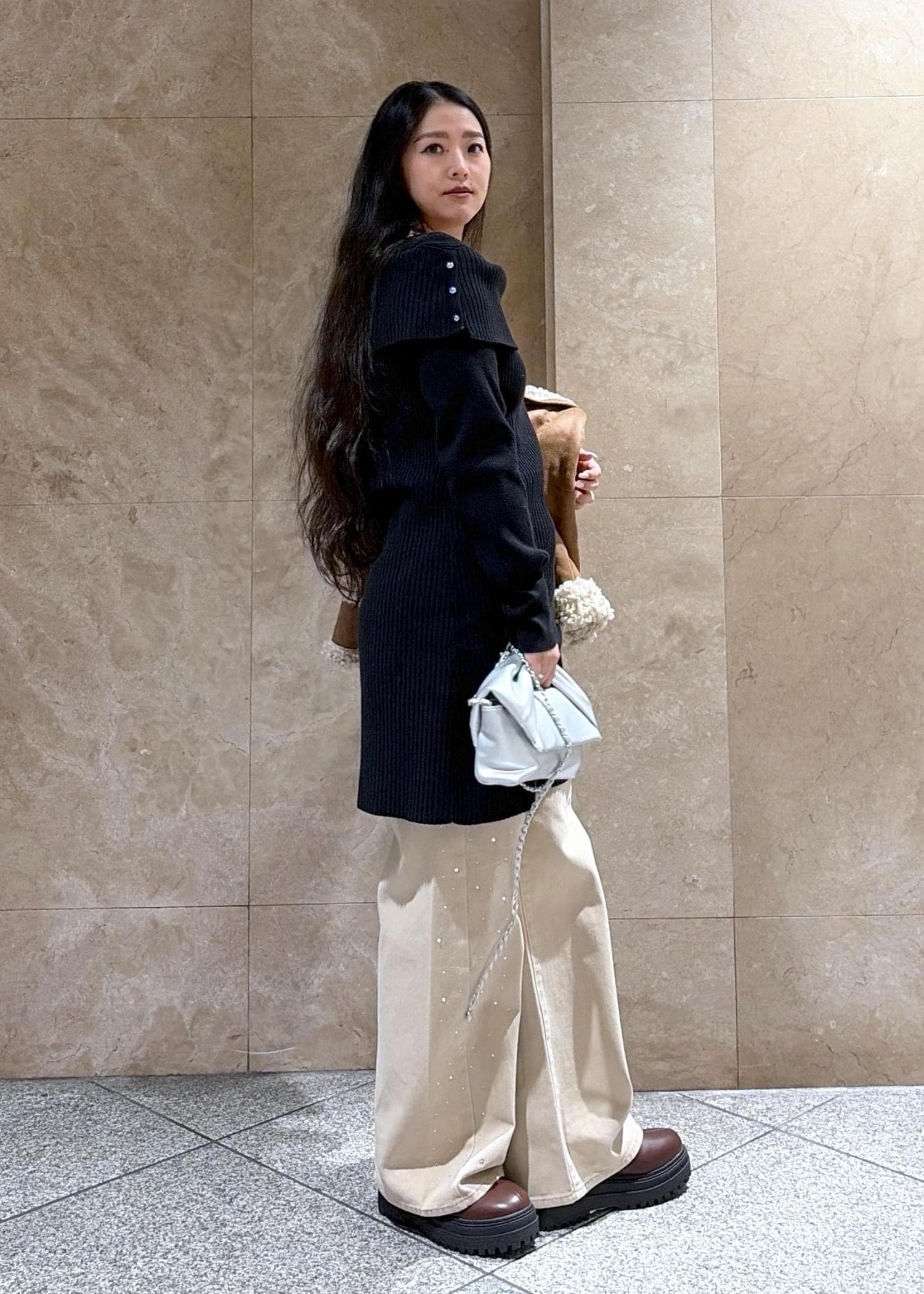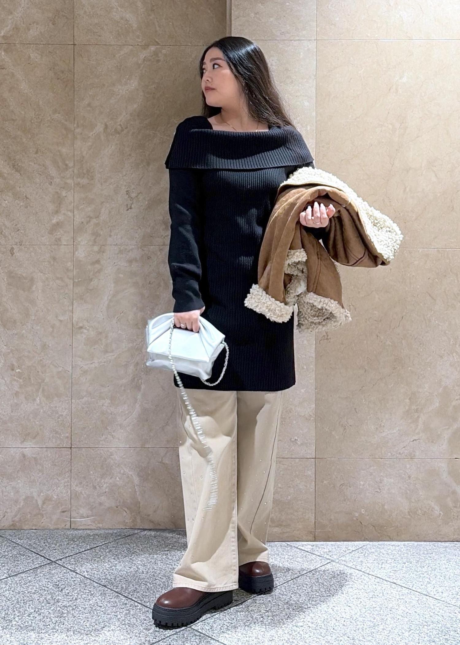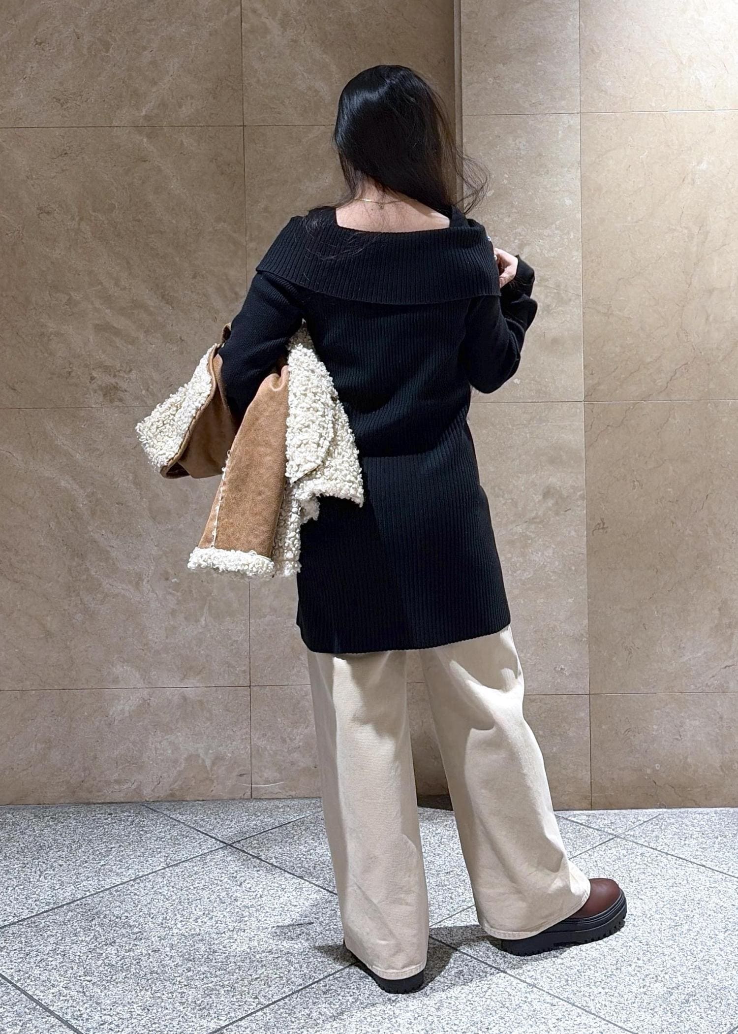 VISアシメオフショルリブニット美シルエットワンピース/着丈が選べるブラック / FS¥7,119レビューオフショルワンピがとっても形も綺麗で、1枚でサラッと着やすいので、オススメです◎