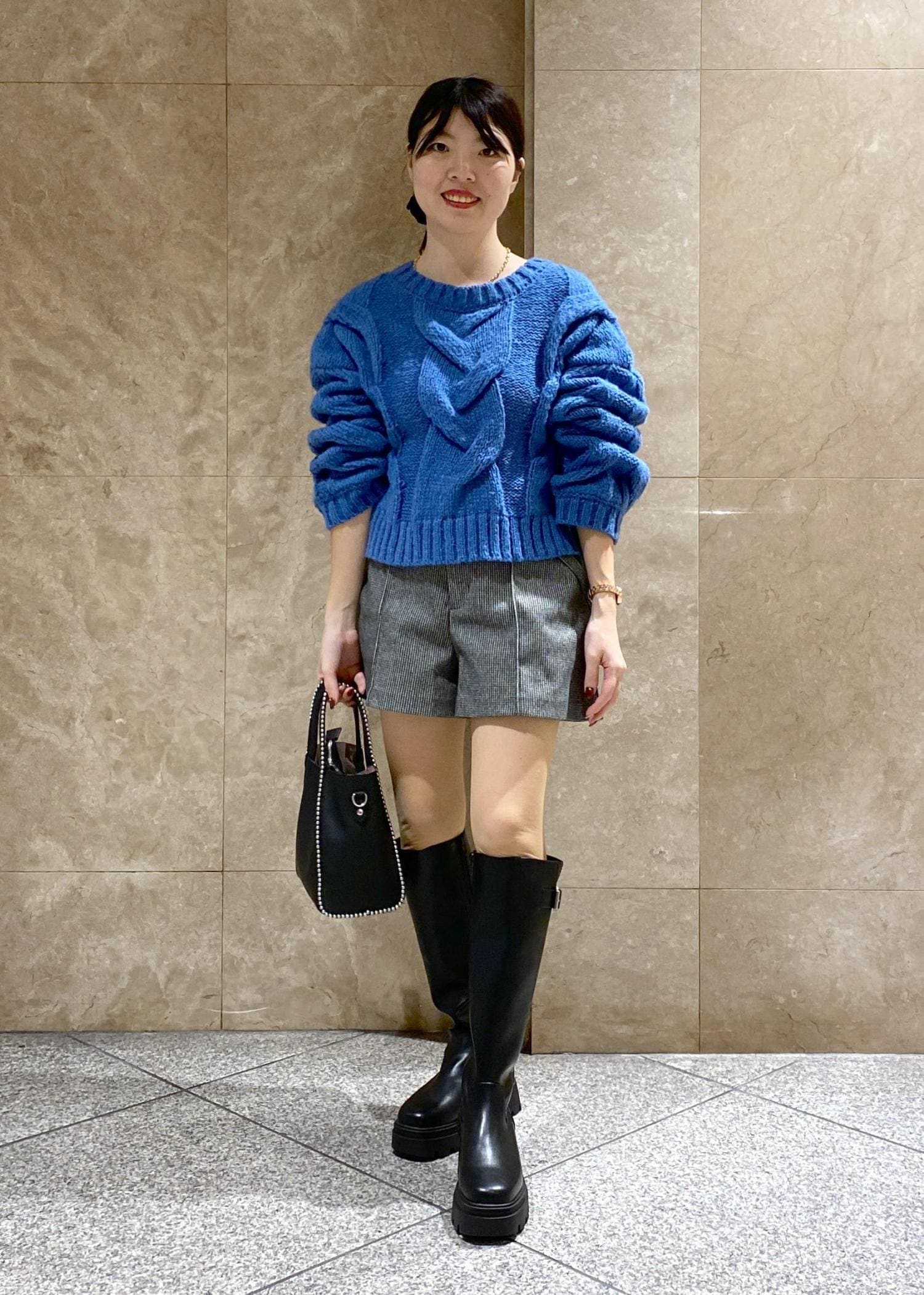 VISケーブルコンパクトニットブルー / F¥5,929レビュー身長150cmで腰にかかる丈感でした!