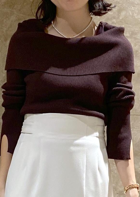 NEW!VIS【美得】オフショルダーモチモチリブニット/好評につき再入荷ダークブラウン / F¥5,489レビュー身長150cmでFサイズを着用し、腰にかかる丈感でした!