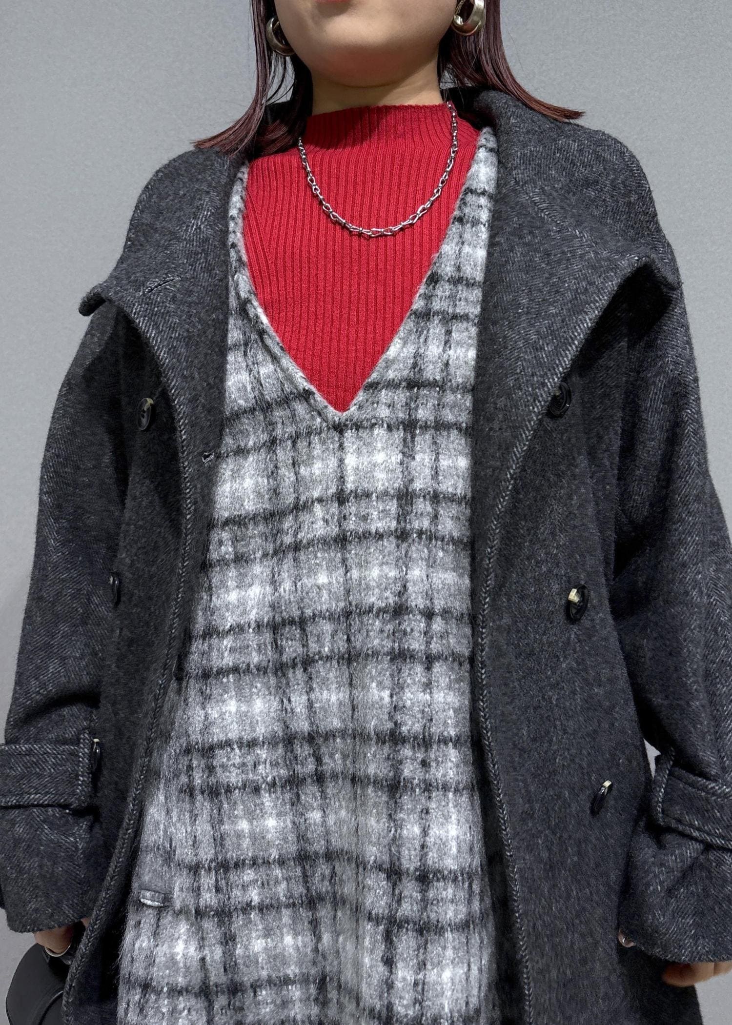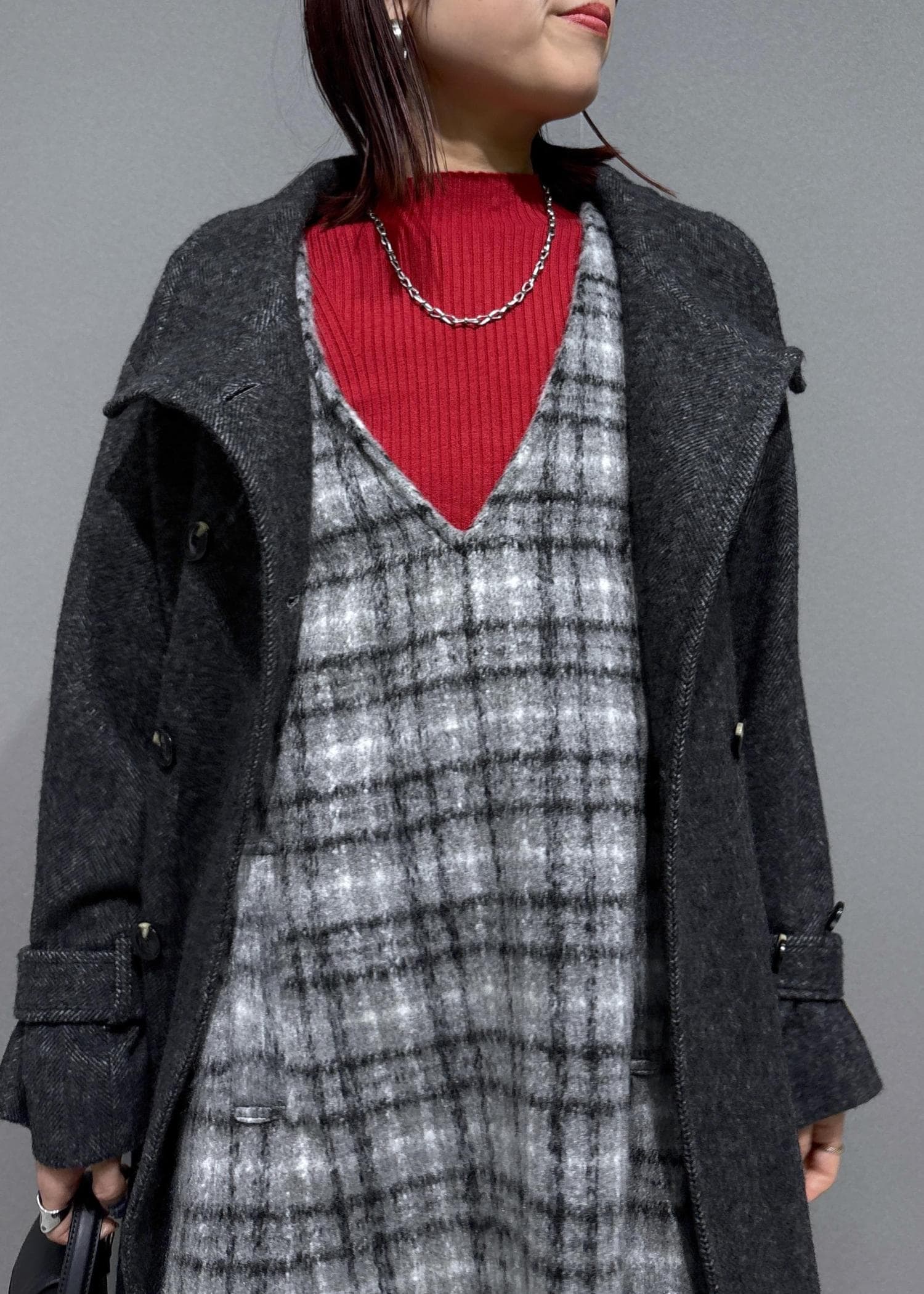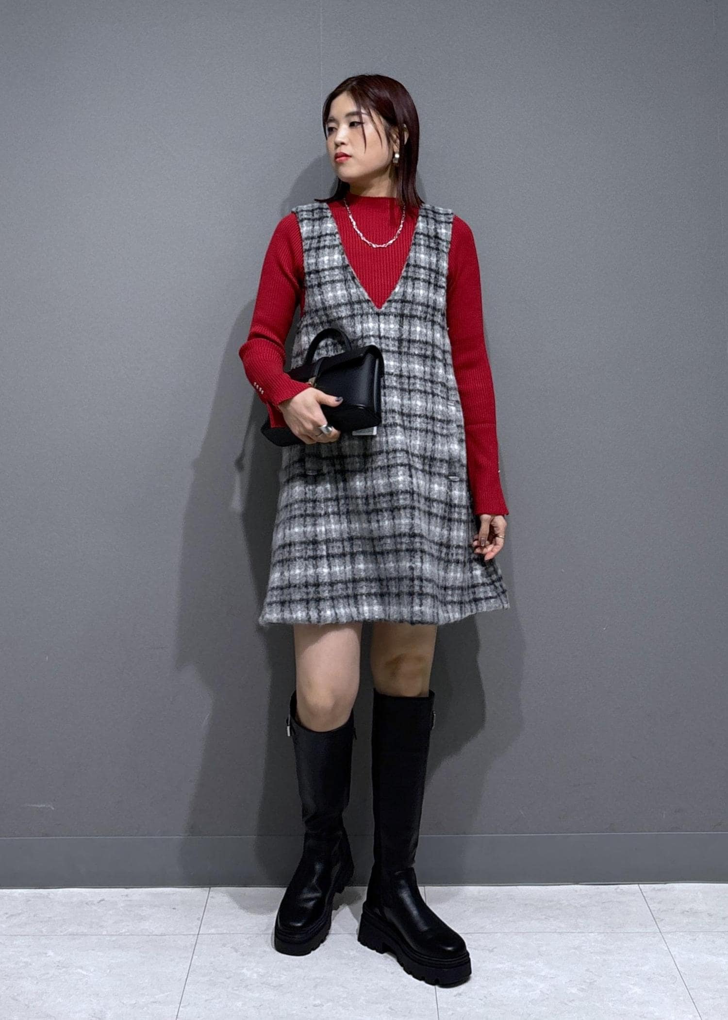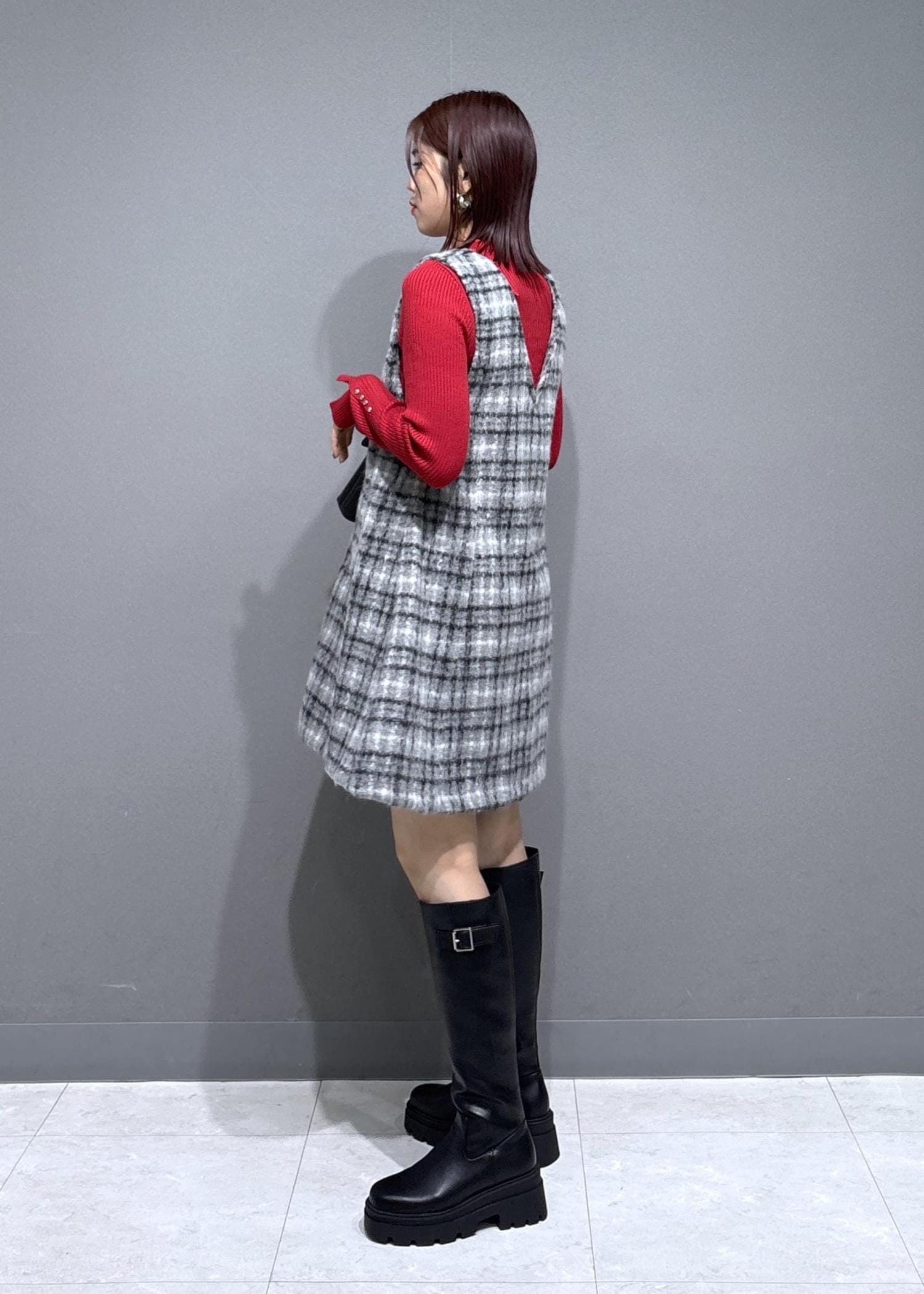 VISシャギーVネックミニ丈ジャンパースカートグレー系 / F¥7,909レビュー幅ゆったりめで厚手のものもレイヤードできます。