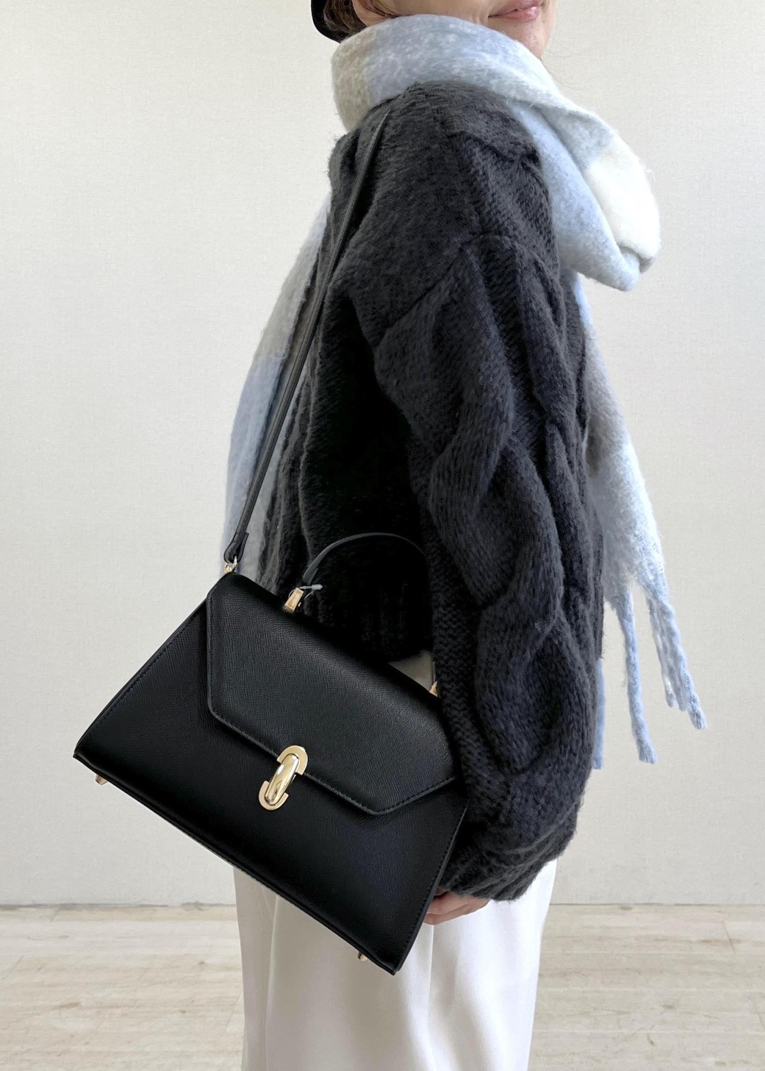 VIS楕円金具ワンハンドルバッグ/2WAYブラック / F¥7,909レビューコンパクトながらしっかり荷物も入れられます。リップ、ミニ財布、携帯など。カチッとしたデザインだけど、カジュアルスタイルに持って抜け感を出すのもお勧め!高見えしてくれる素材感なのも嬉しいポイント◎どのカラーにするか迷います。