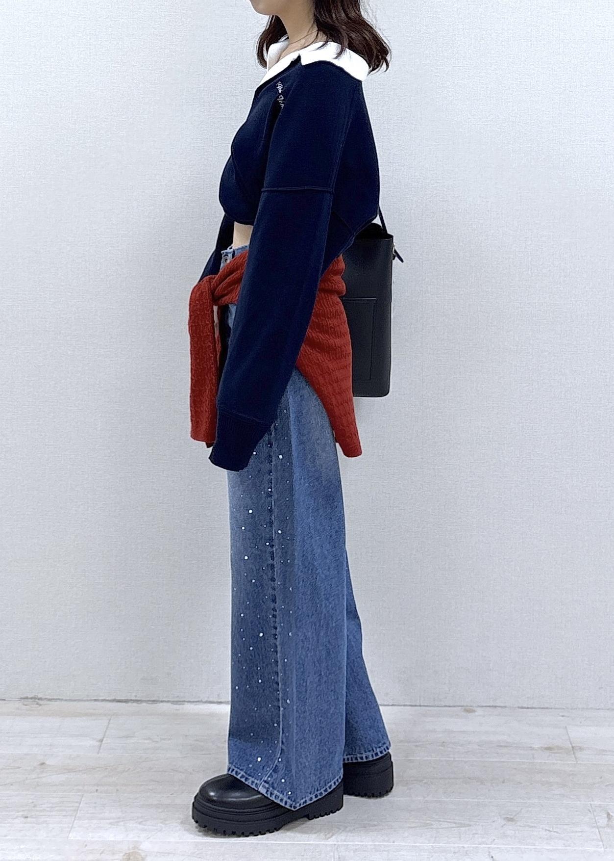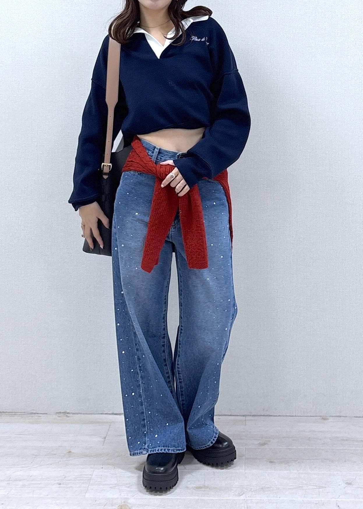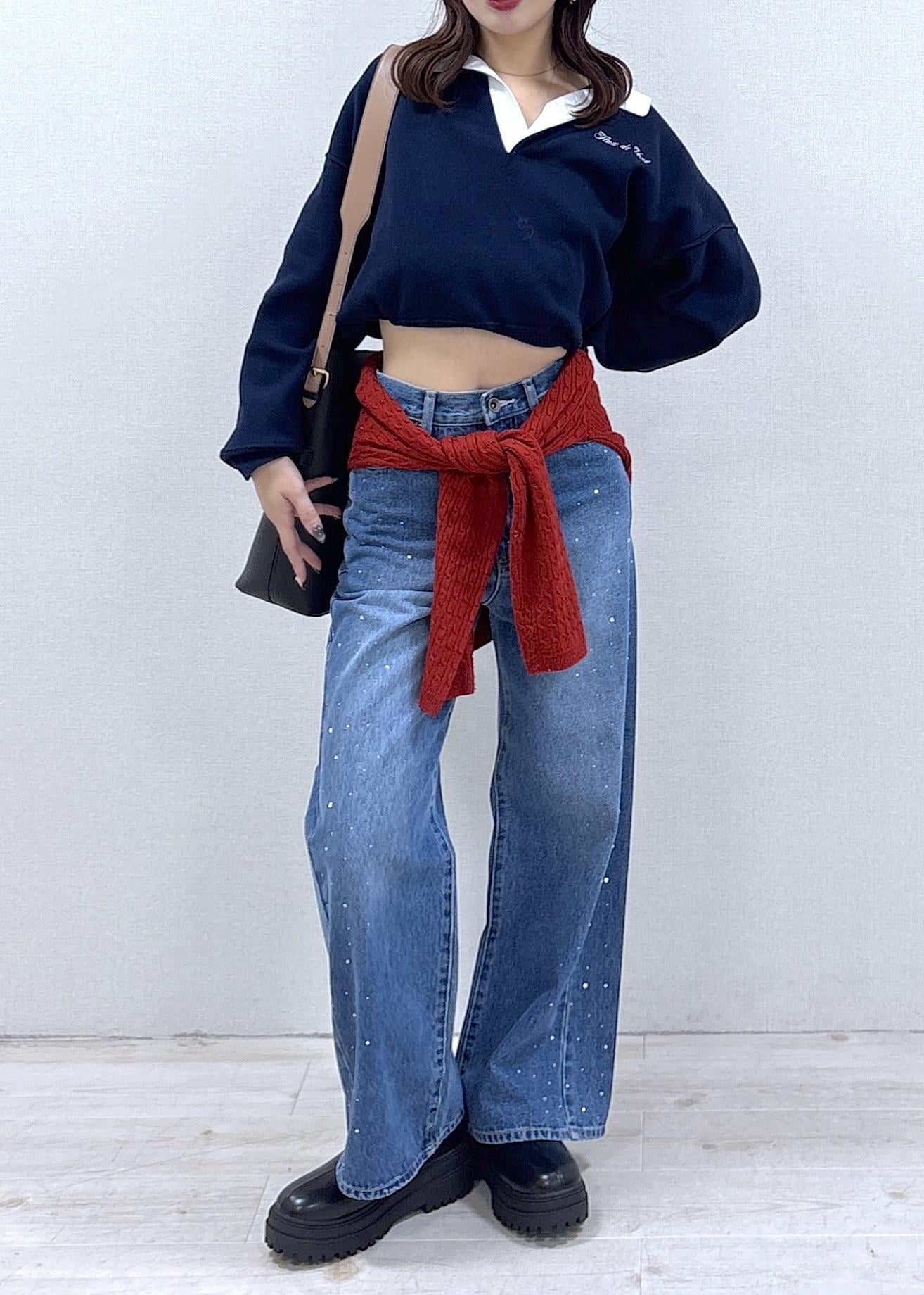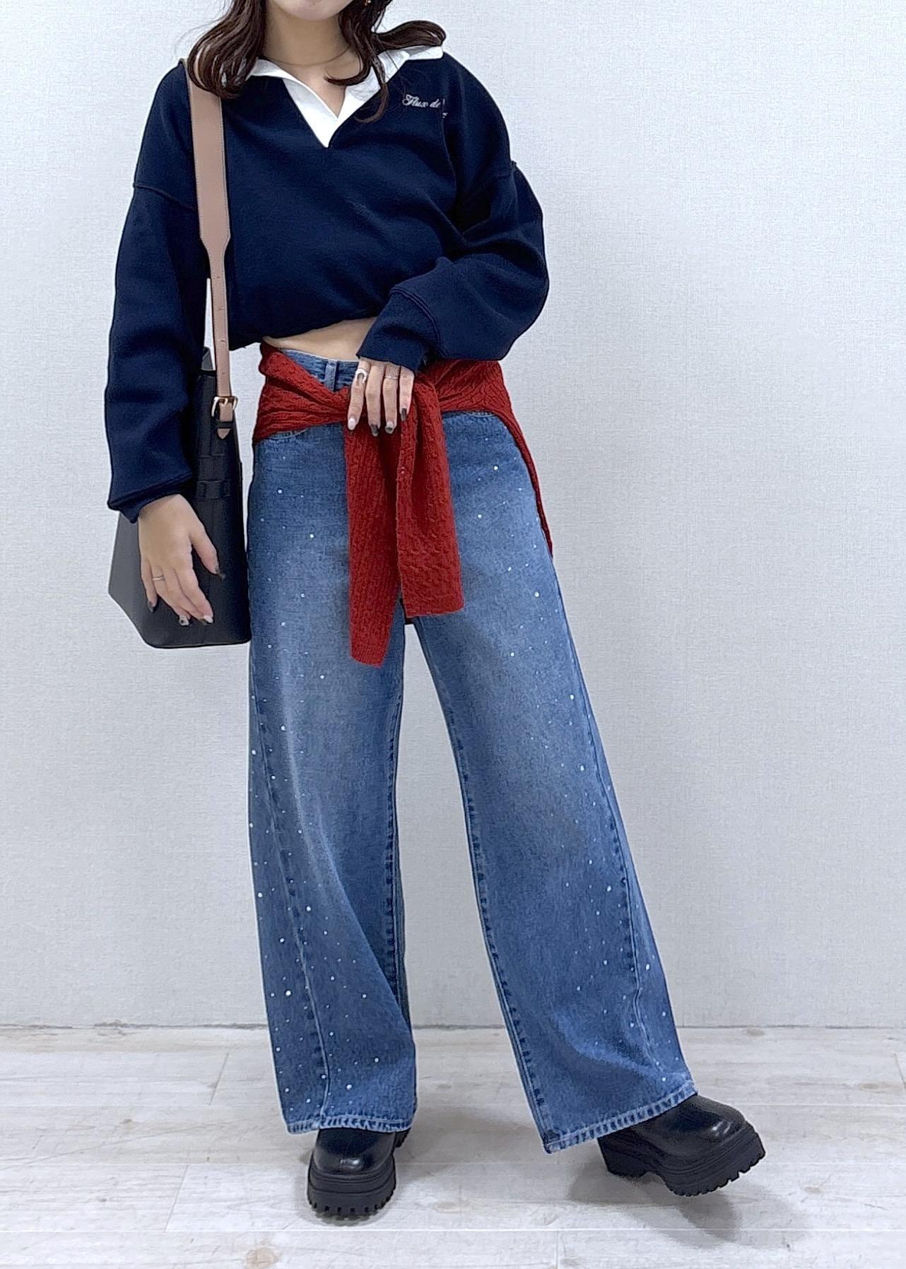 VISビジューデニムパンツブルー / S¥6,327レビュー綺麗め、可愛らしい甘めなコーデに合わせやすい柔らかい色味のデニムで、歩くたびにビジューが光って存在感があります!写真より実物の方がビジューがよく見えるはず!