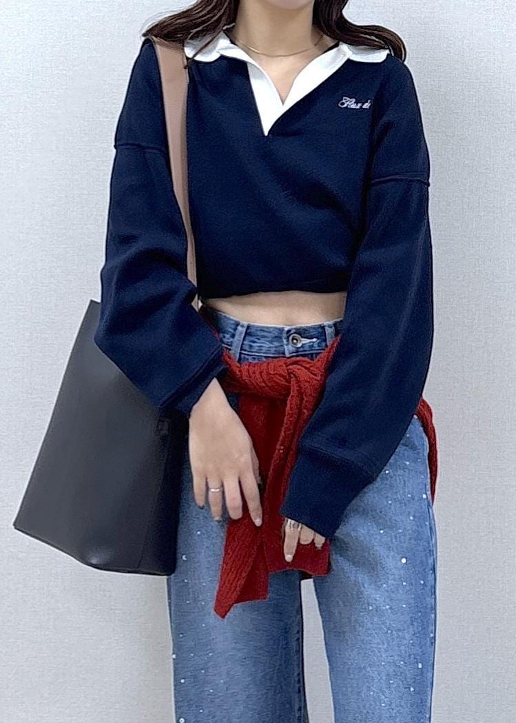VISワンポイント刺繍ポロニットプルオーバーネイビー / F¥6,589レビューラフすぎずきちんと感もある、襟付きデザインがかわいいです♡スウェットっぽいニット素材なので着心地は楽ちん、デイリー使いにも◎