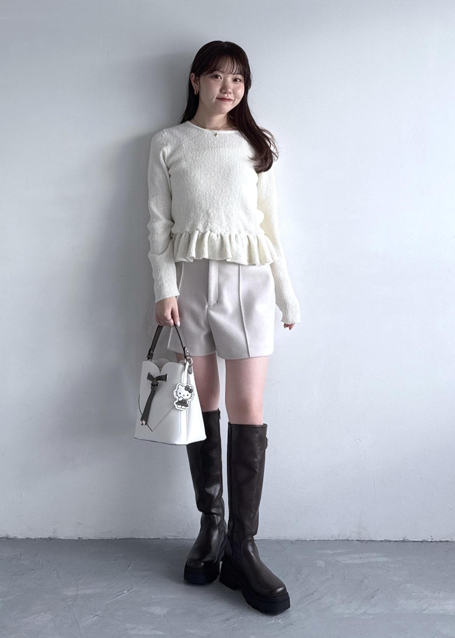 丈感は、Mサイズで身長158cmで厚底ブーツを履いて太ももの中心くらいの丁度良い丈でした◎ -
