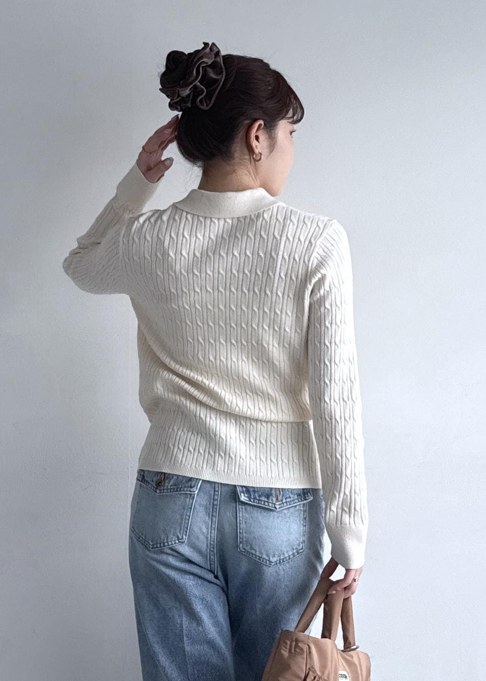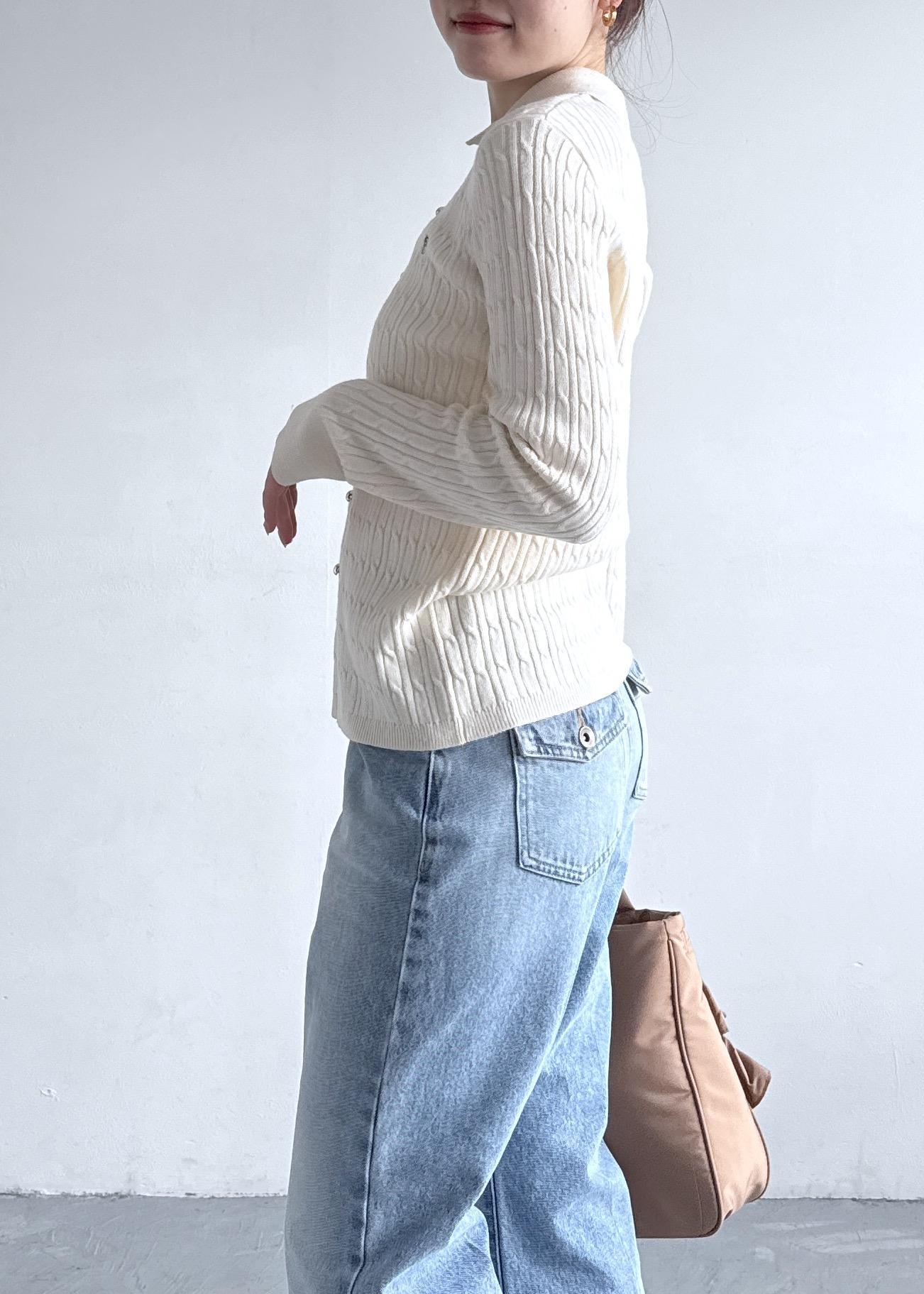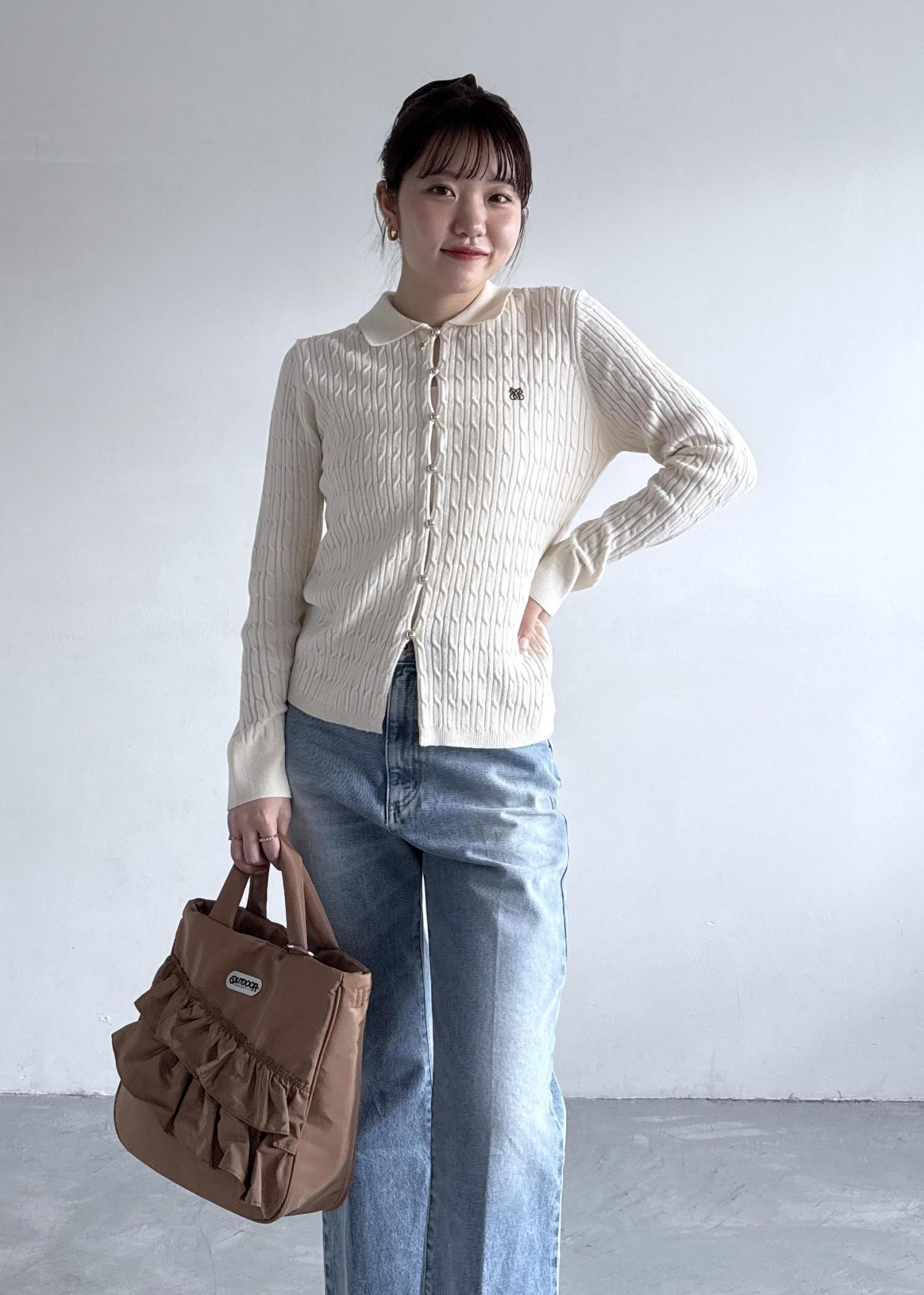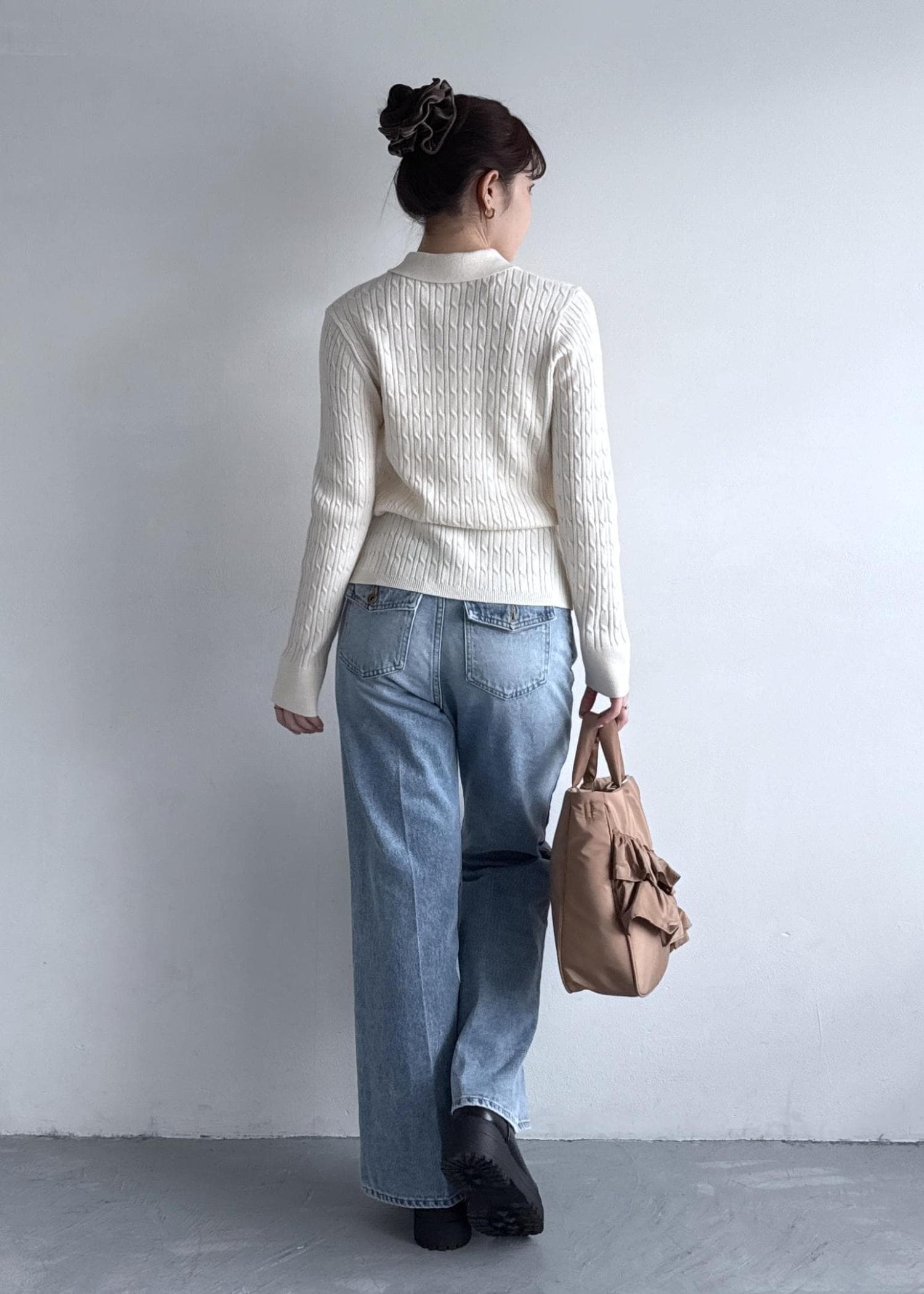 すっきり華やか◎春まで着れる!ケーブルカーディガンをメインにデニムと合わせて、女性らしいヘルシーなスタイリングに!
