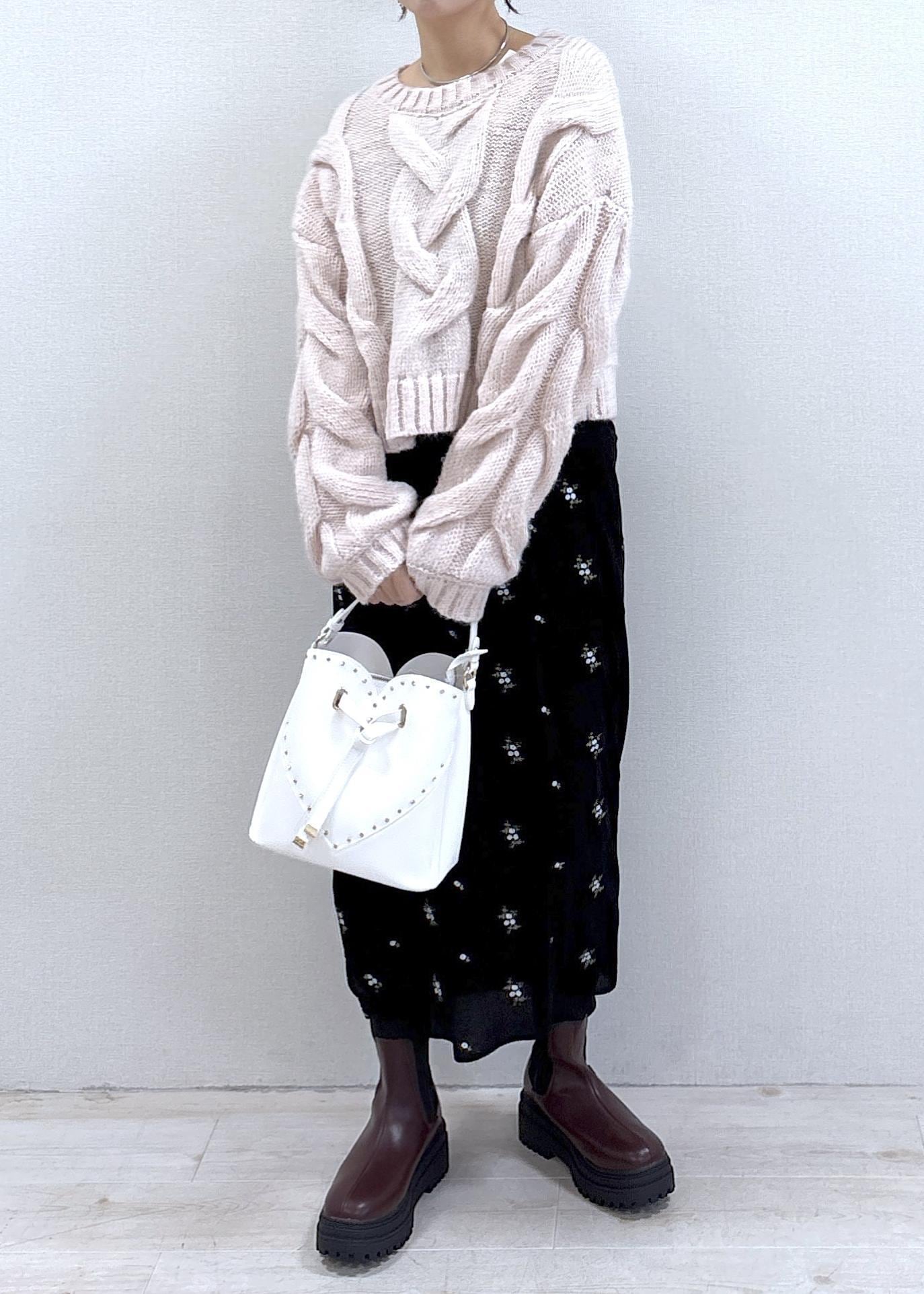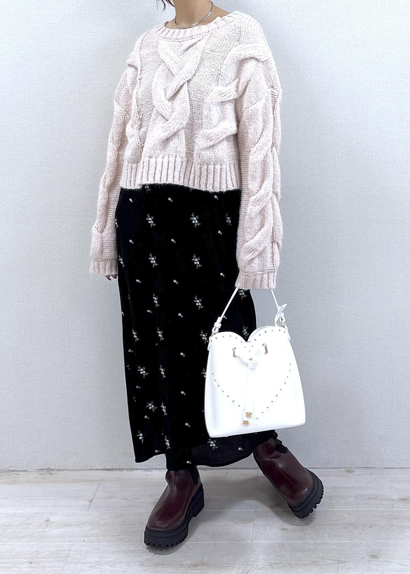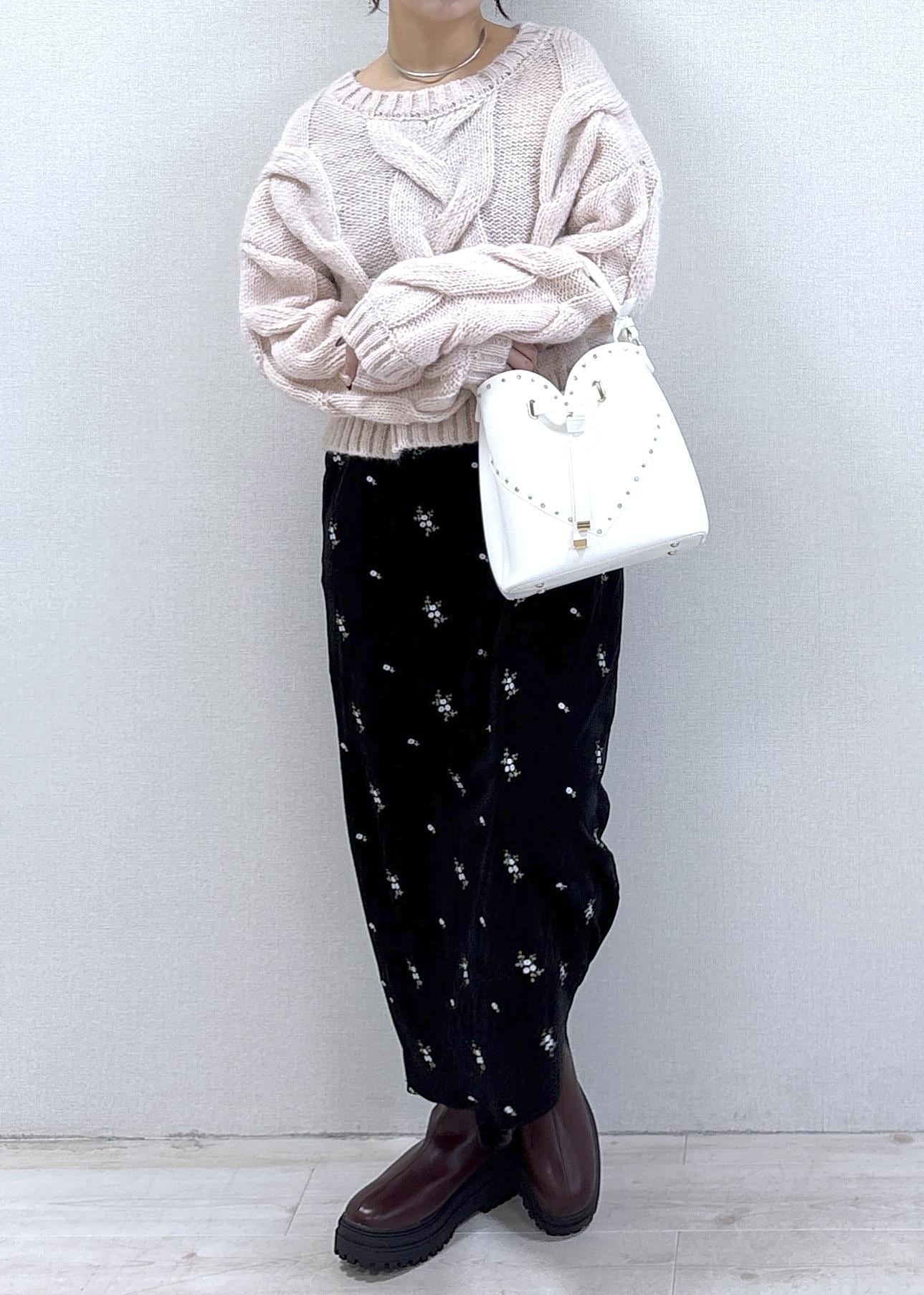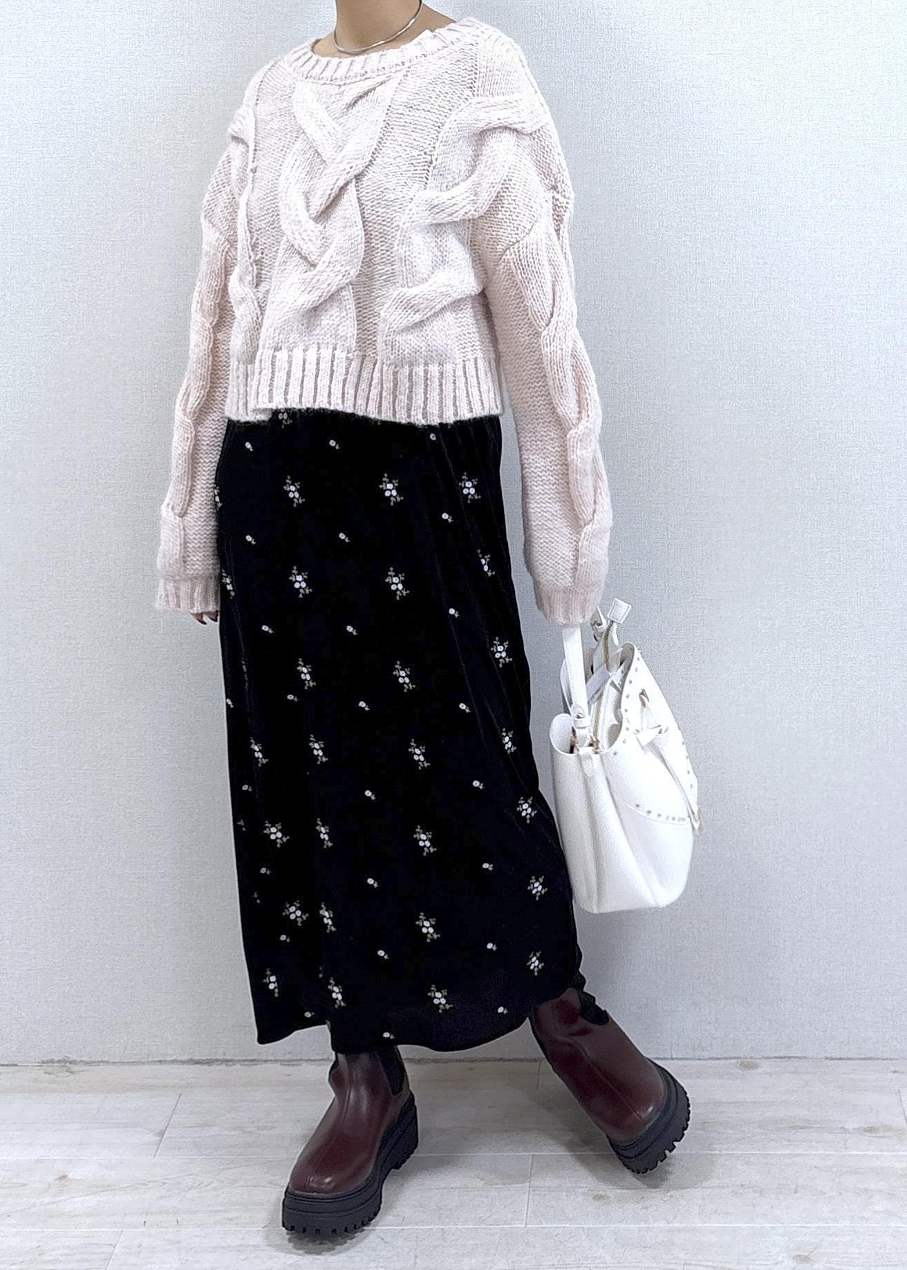 VIS刺繍アソートベロアキャミワンピース/2WAYブラック系 / F¥8,899レビュー肩紐の調整幅が広いので長めに着ても短めでブーツ見せも叶います。