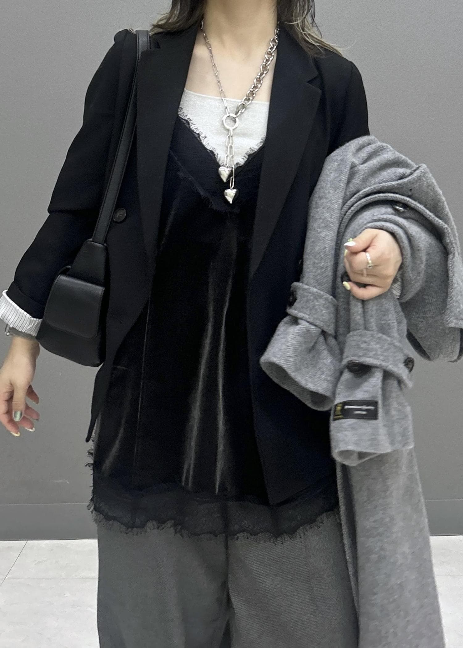 VISベロアレースキャミチュニックチャコール / F¥5,489レビュー157cmでお尻が隠れる着丈でした!