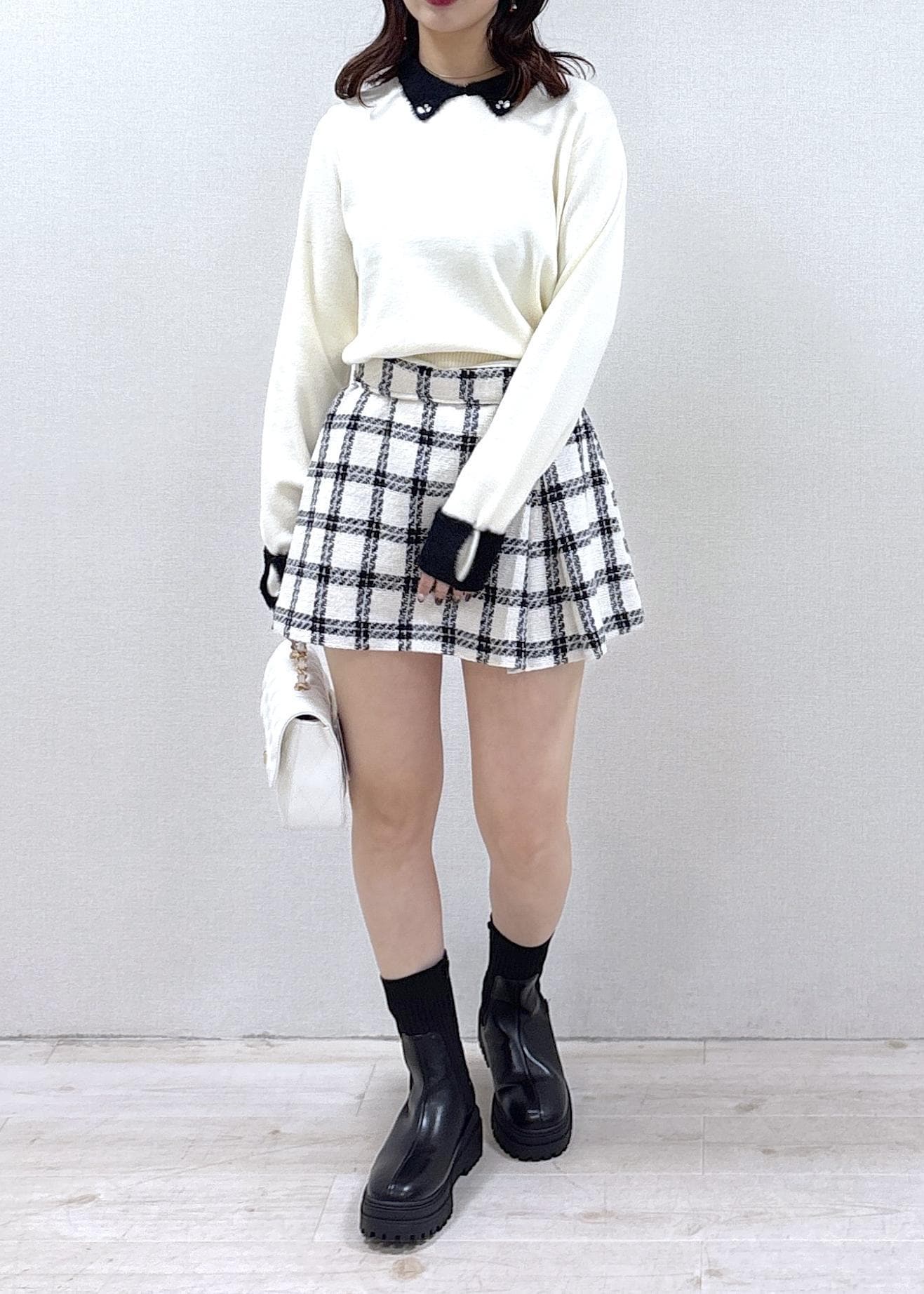 VISロービングチェックミニスカートオフホワイト / F¥6,589レビューフレア感のあるシルエットがガーリーで可愛いです!