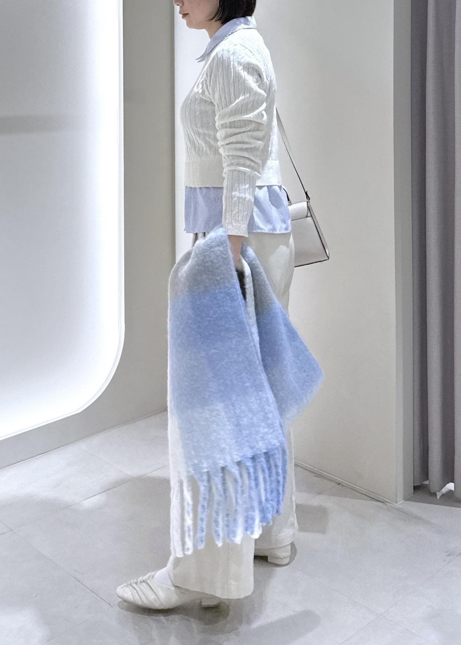 VISふわふわフリンジチェックマフラー/静電気防止ブルー系 / F¥3,289レビュー大判のサイズなので首元に巻いたり、肩からかけたり使いやすいです!