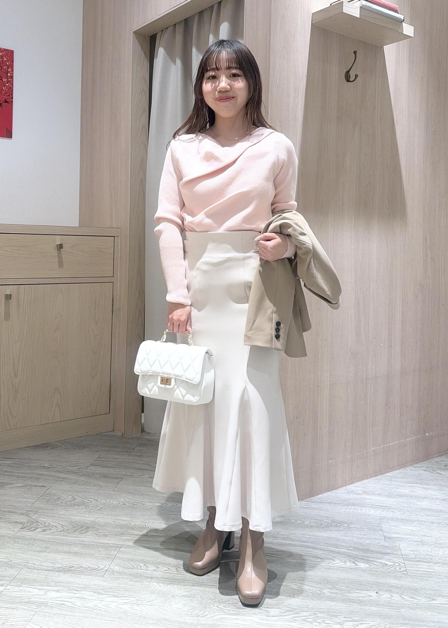 大人気のドレープニットを使用したオンオフ兼用コーデです!