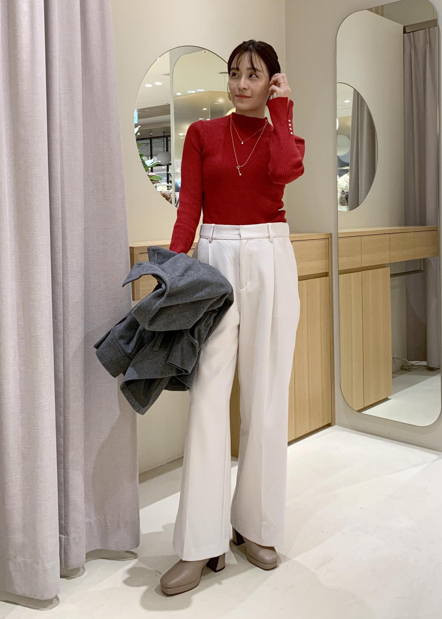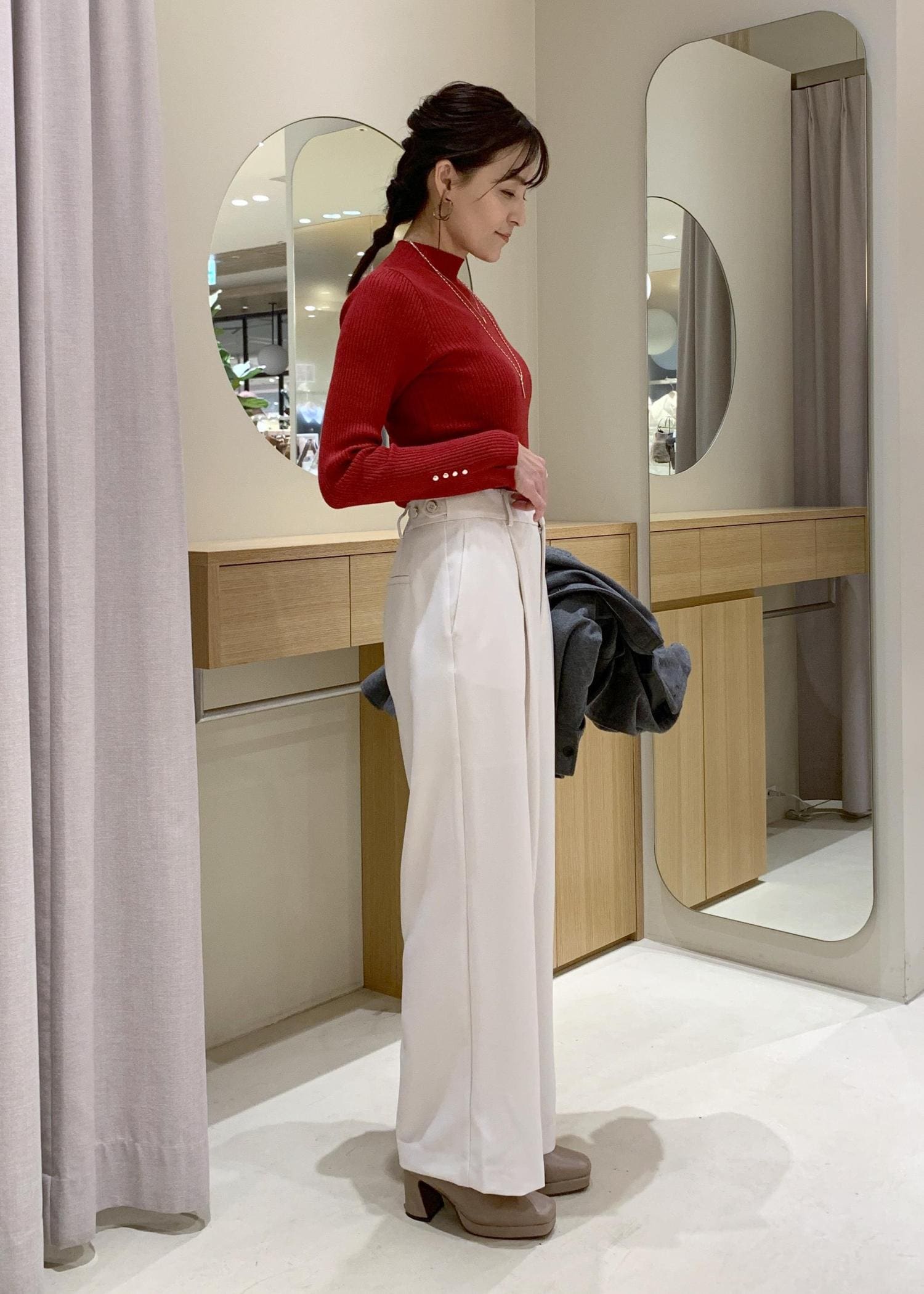 首元はプチハイネックなので、詰まりすぎてなく程よいです。 -
