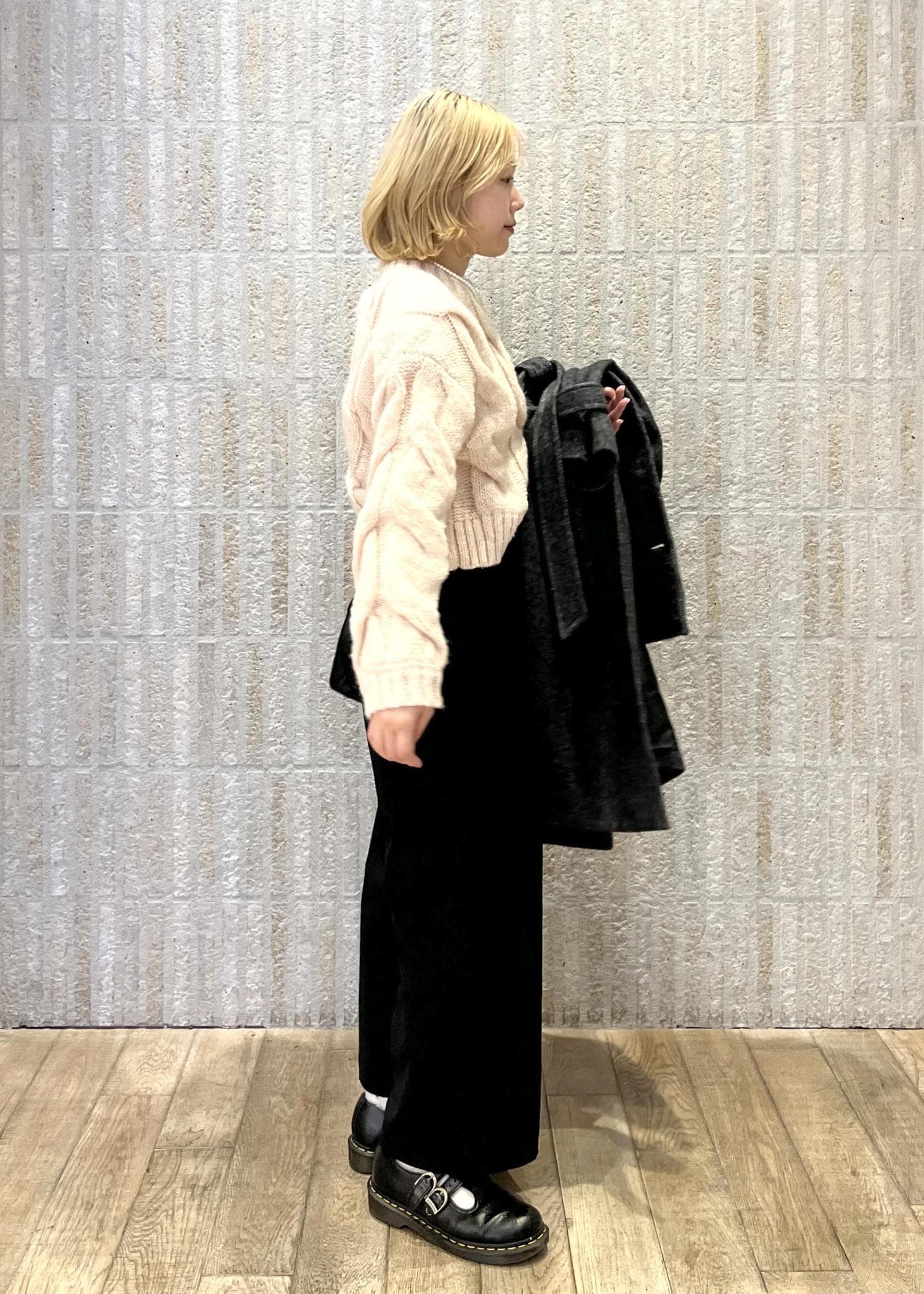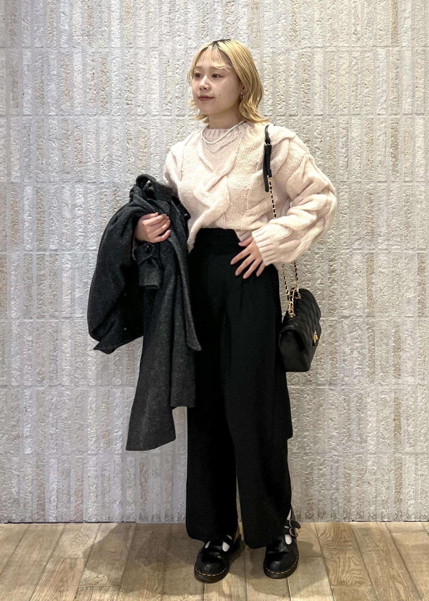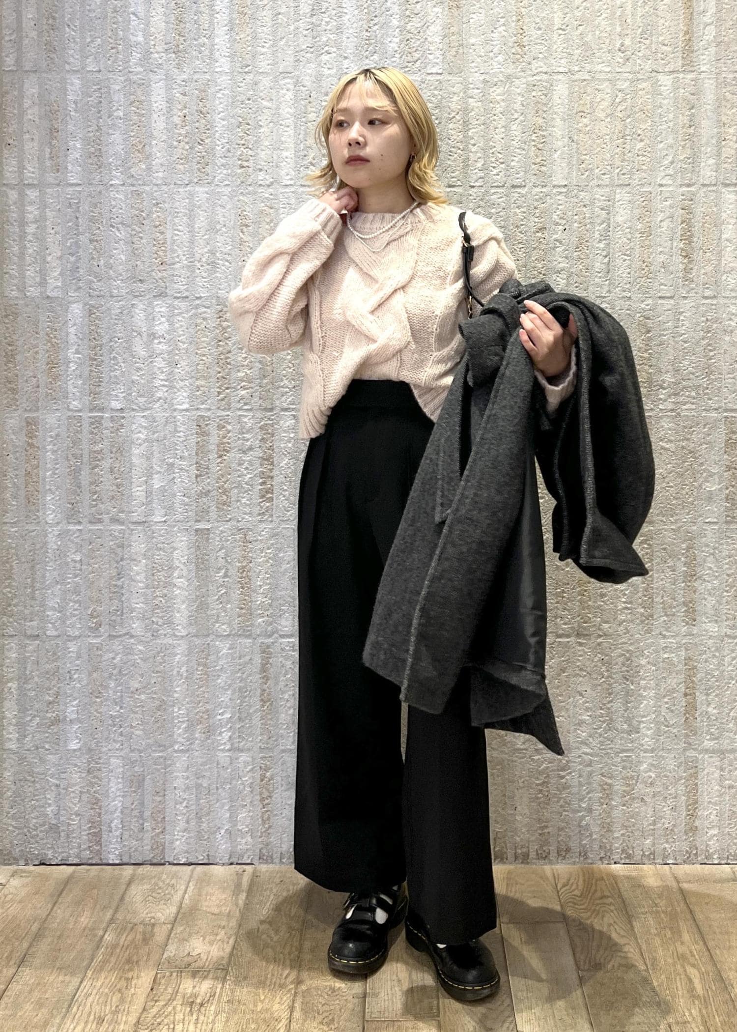 冬に着たくなるザックリニットと裏起毛のワイドパンツを使ったシンプルコーデです。