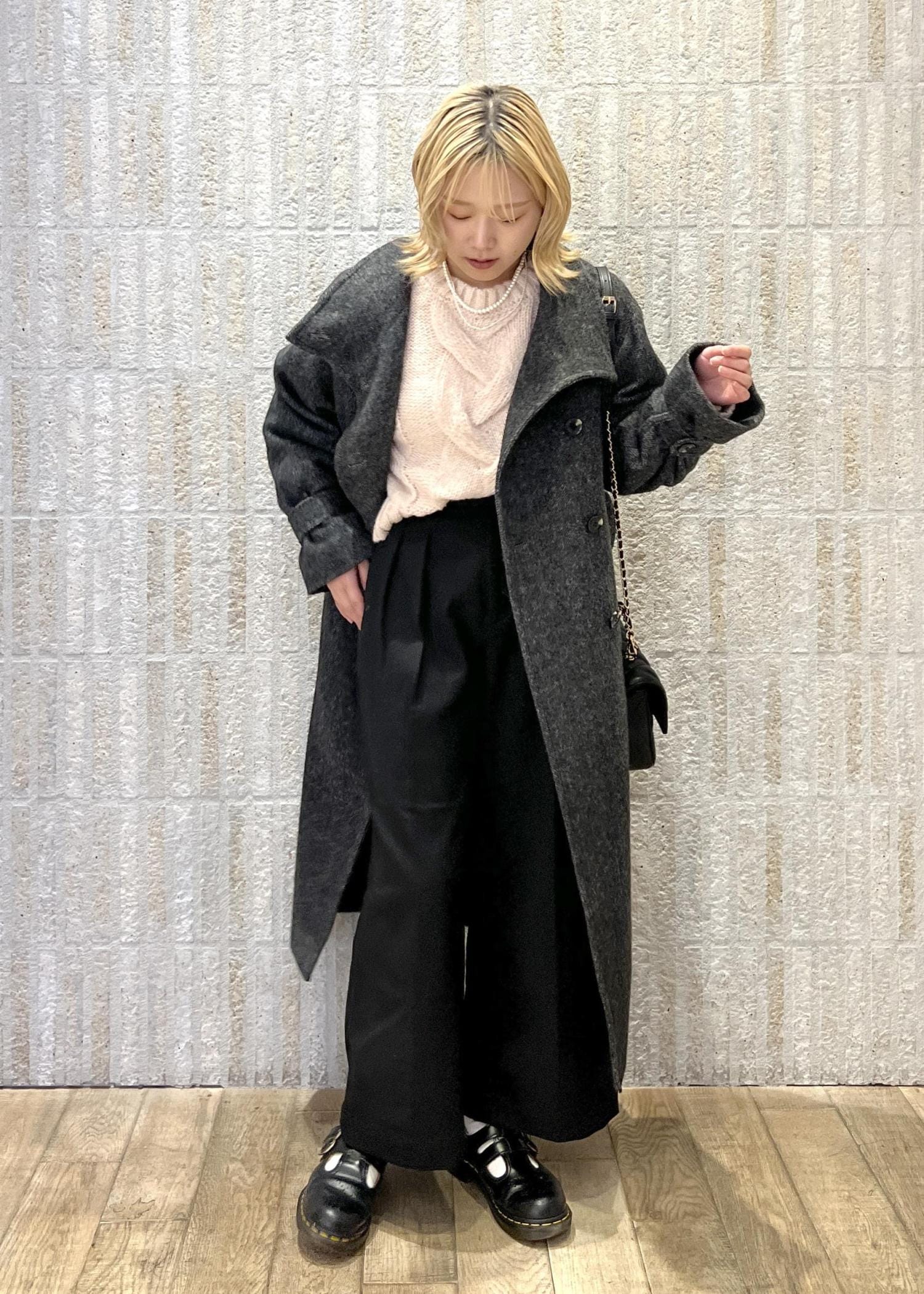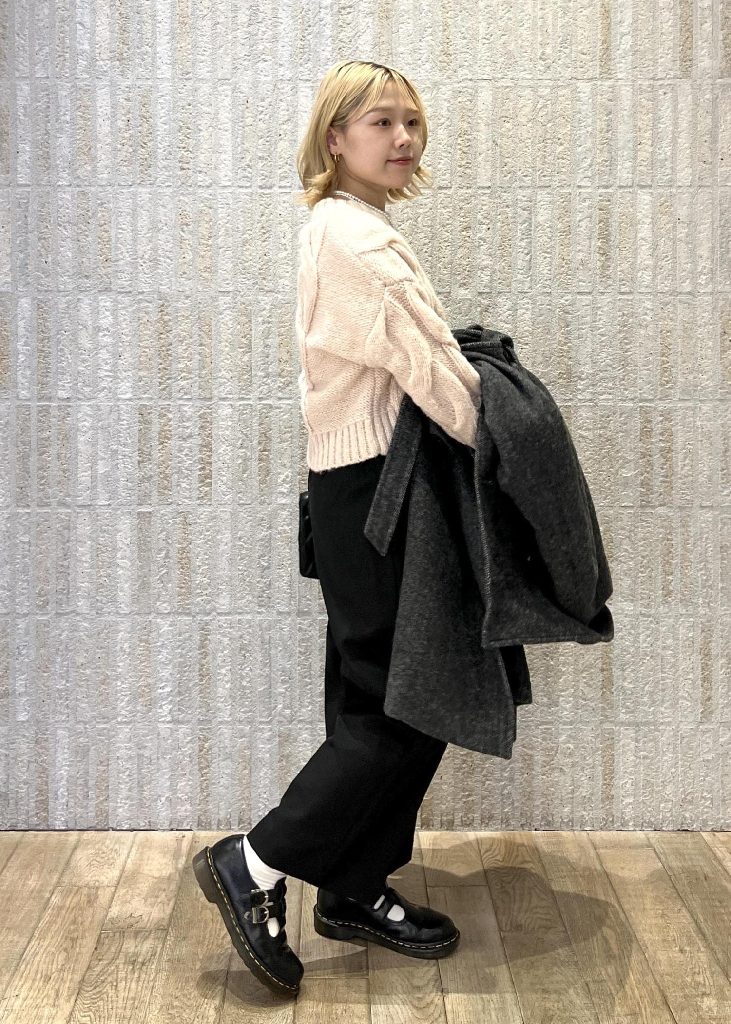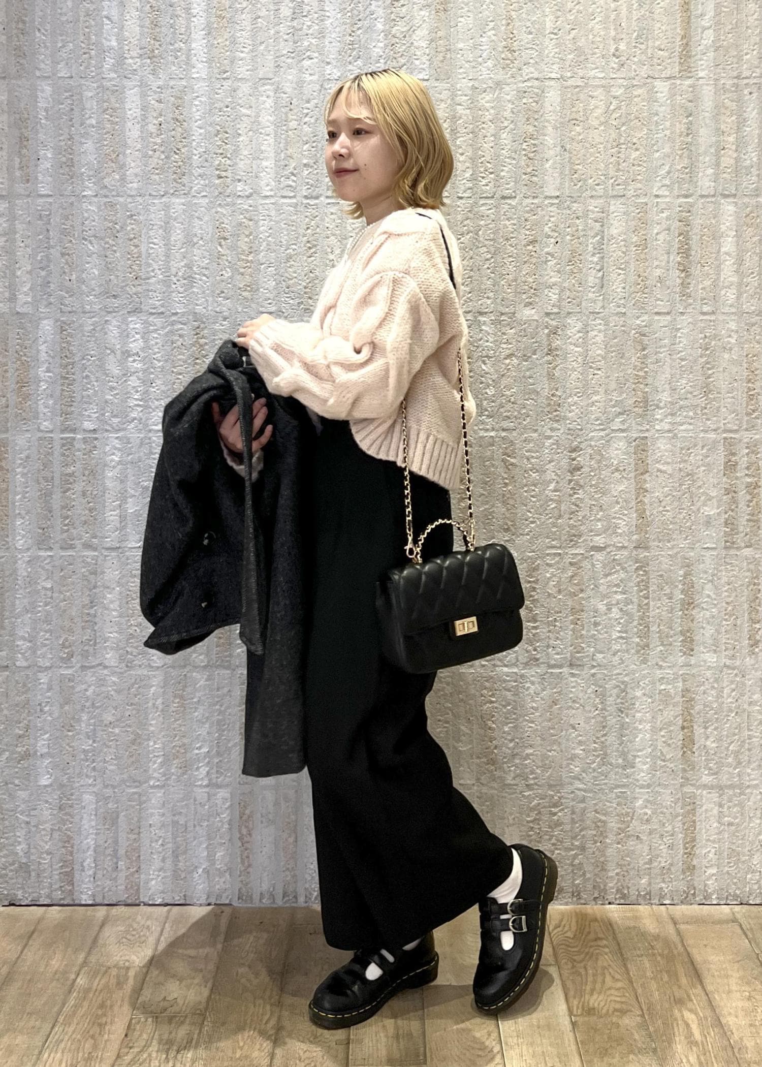 冬に着たくなるザックリニットと裏起毛のワイドパンツを使ったシンプルコーデです。