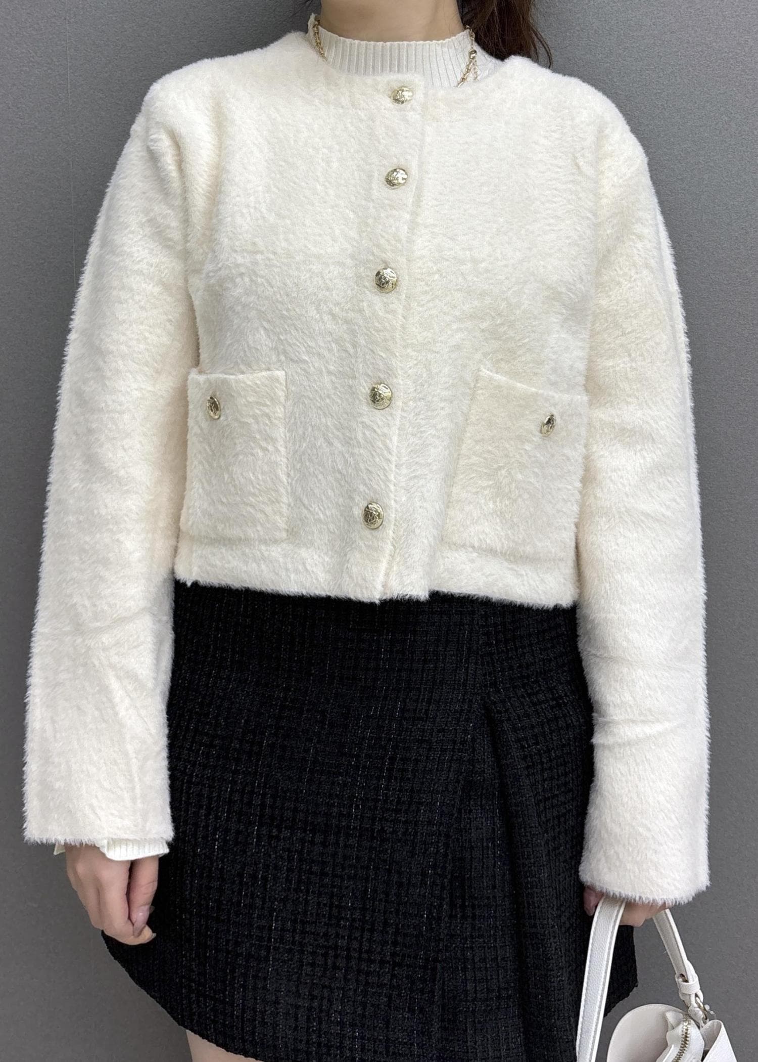 VIS接結ミニフェザーニットジャケットカーディガン/一部WEB限定カラーオフホワイト / F¥6,919レビューふわふわで肌触りの良いカーディガン♩160㎝だと腰まわりが隠れるコンパクトな着丈、身幅はややゆとりがあったので重ね着できます!骨格ストレートですが、着膨れを気にせず着用できました♡