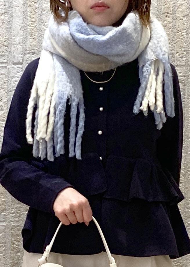 VISふわふわフリンジチェックマフラー/静電気防止ブルー系 / F¥3,289レビュー柔らかいシャギーのような