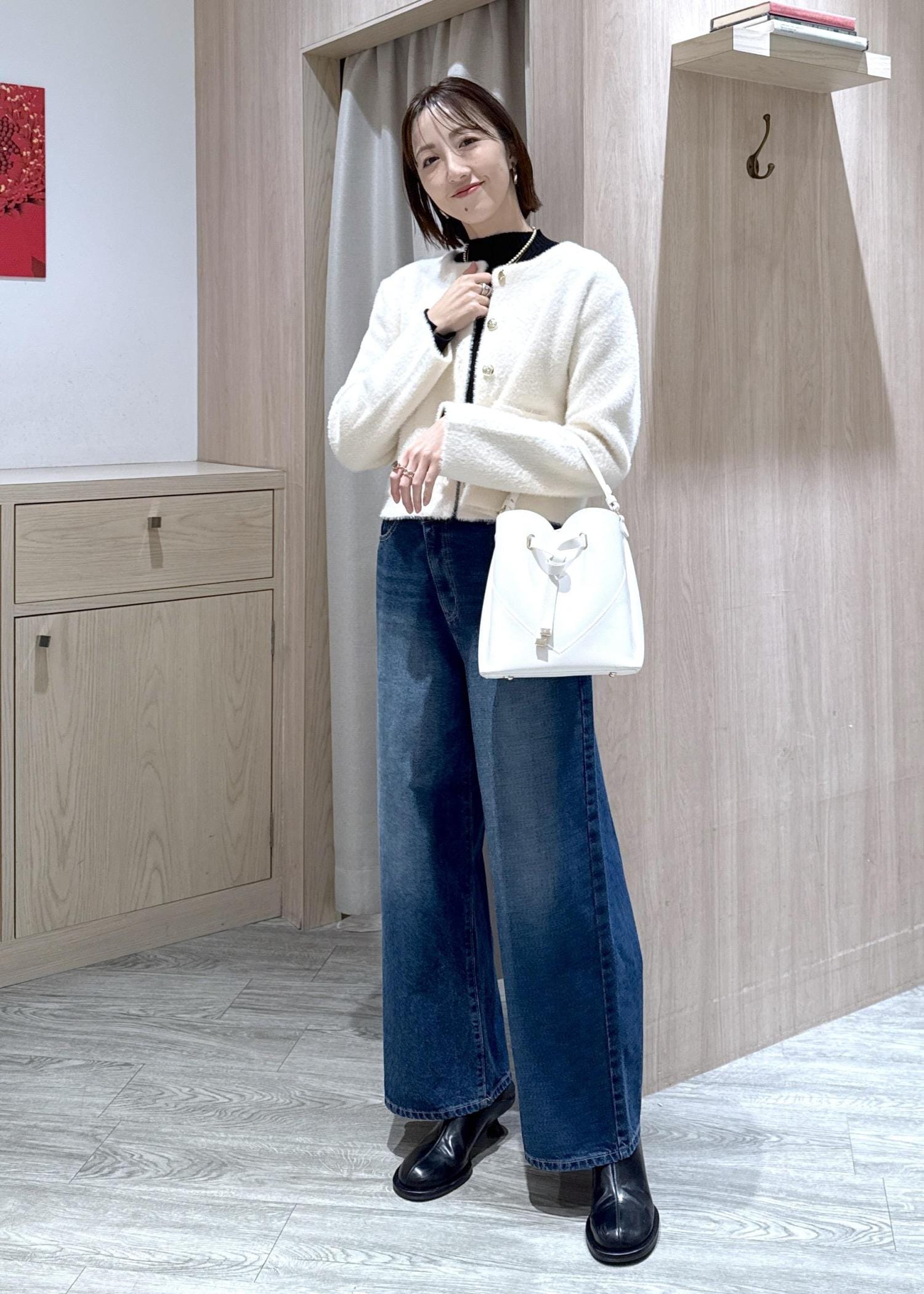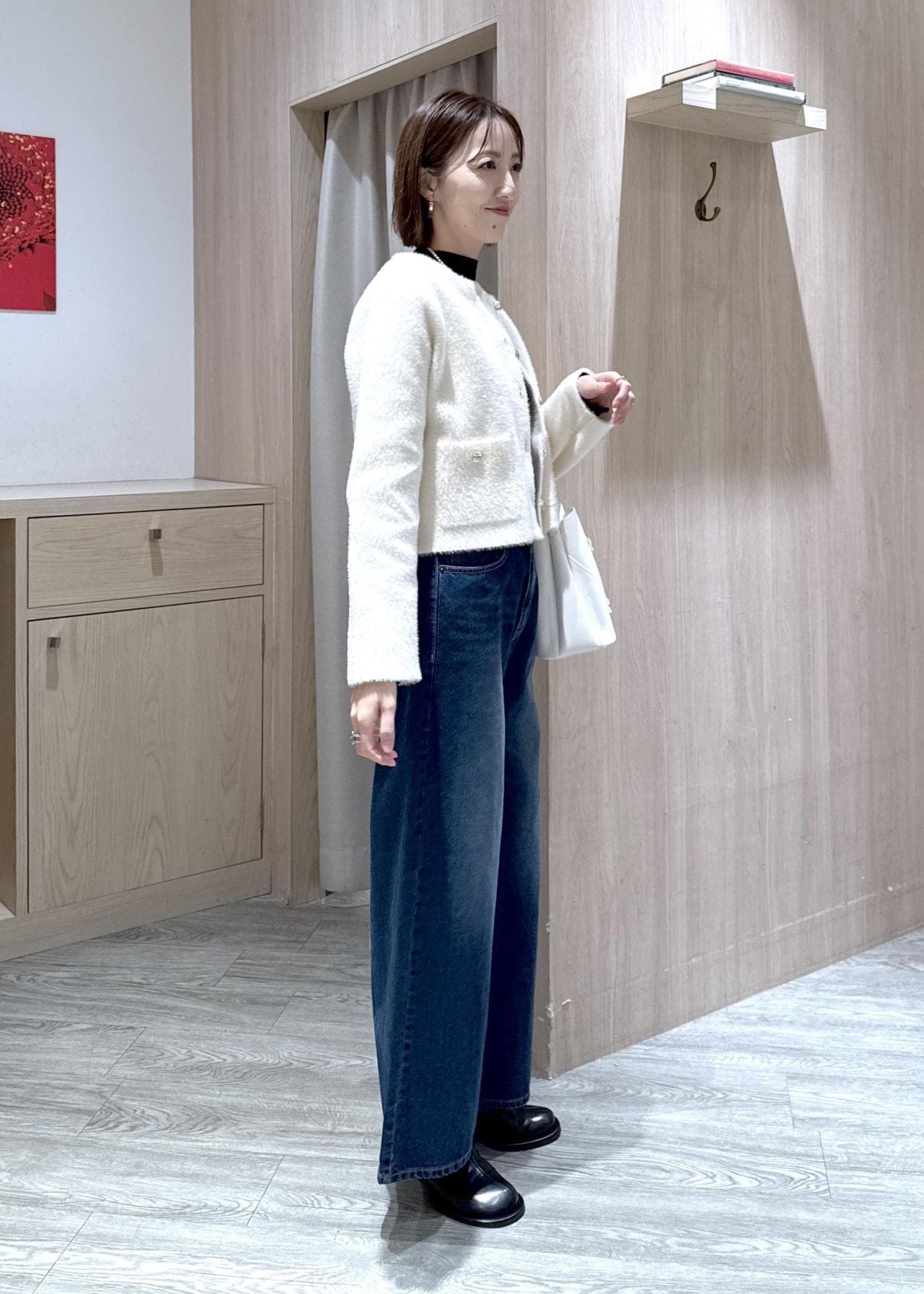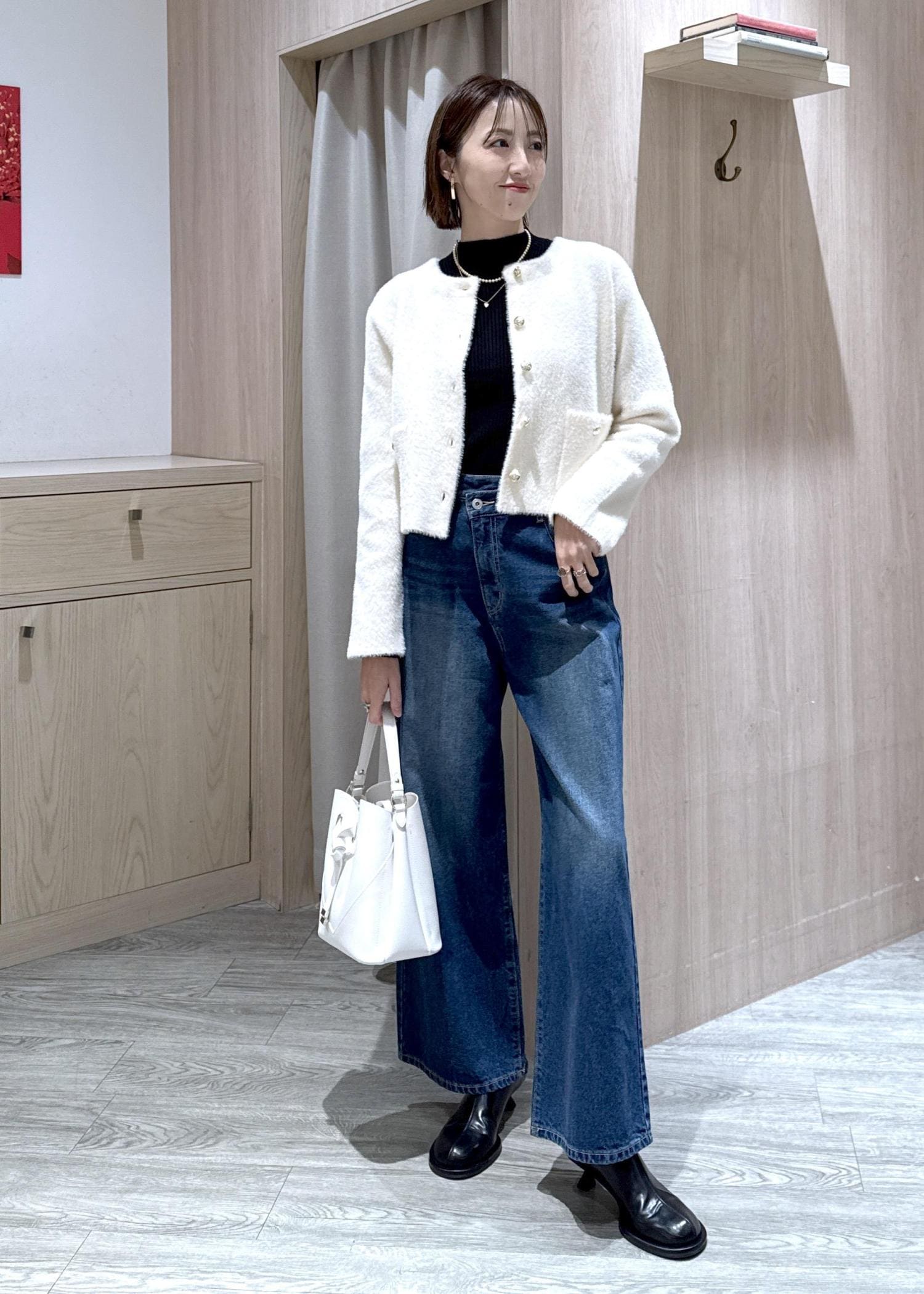 キレイめカーディガンにデニムを合わせた大人のデニムコーデです!