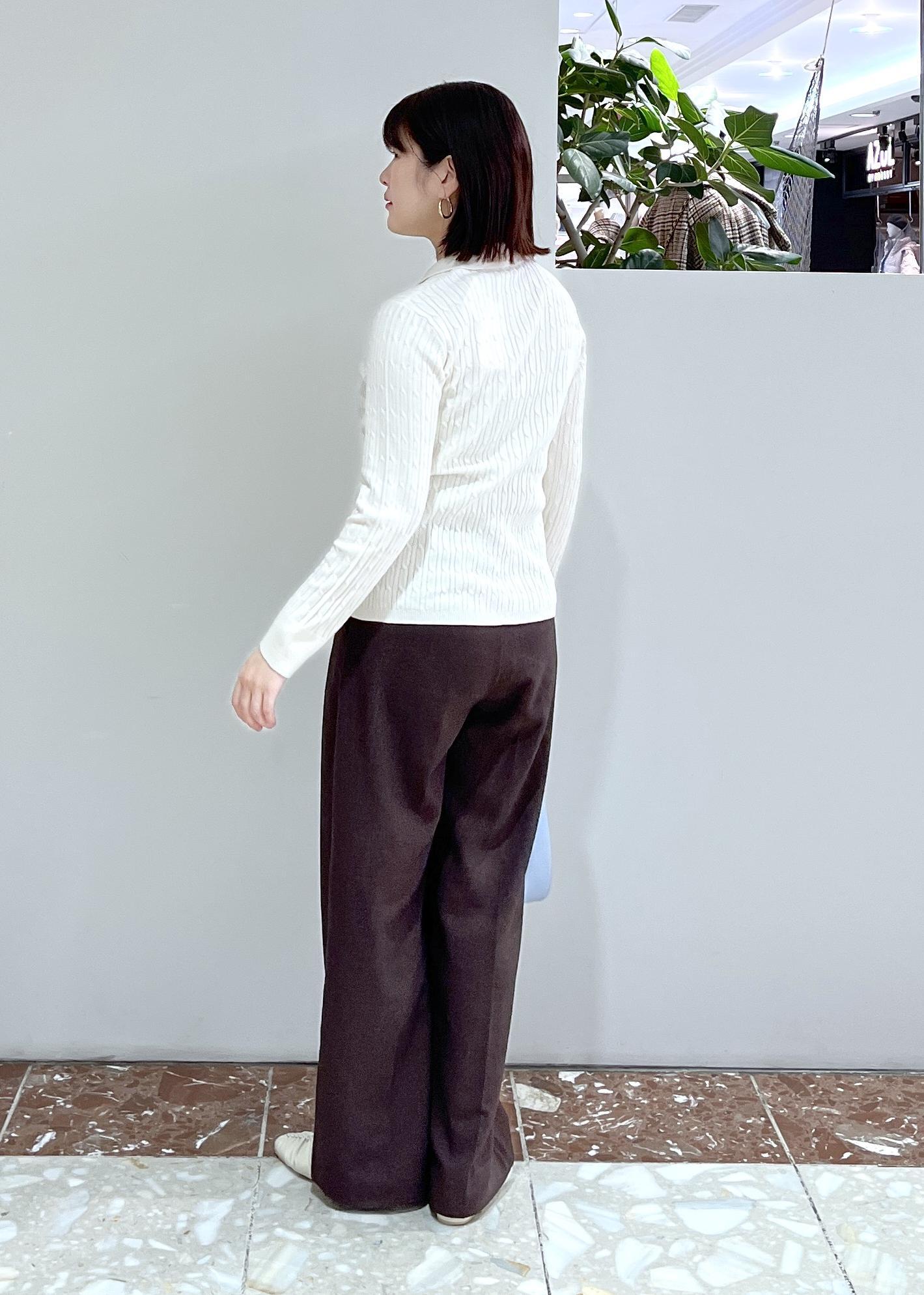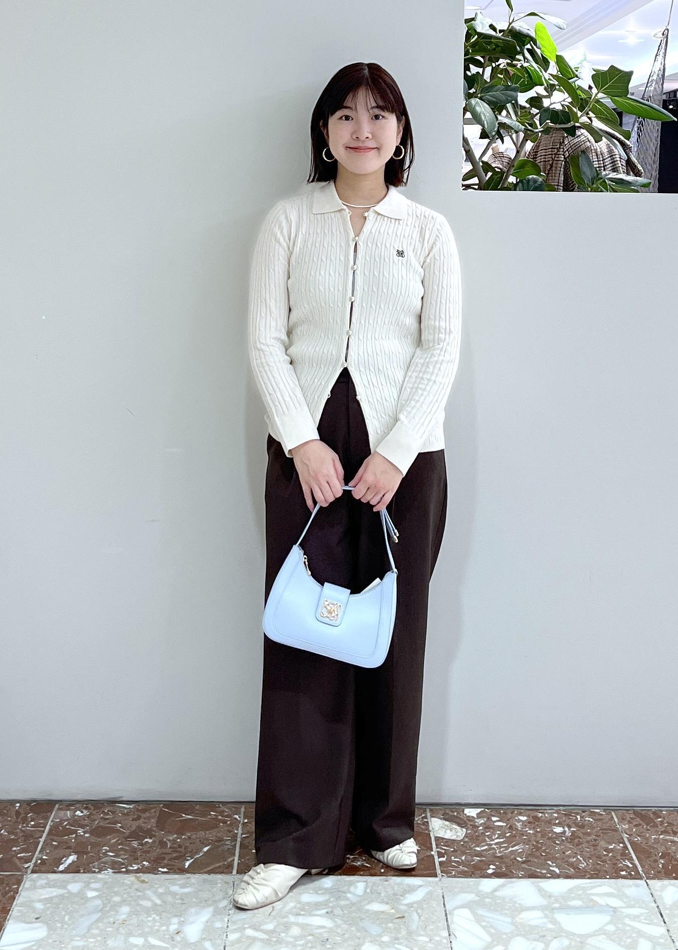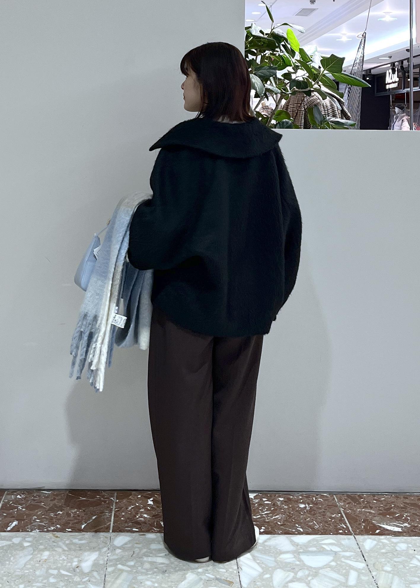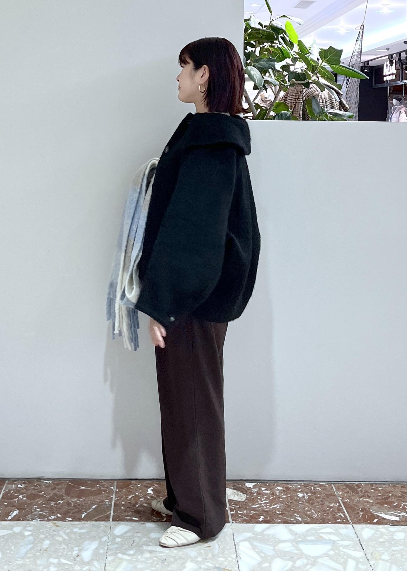全体的にコクーン型のシルエットなのでフレア袖やボリュームあるトップスも重ね着しやすいです。