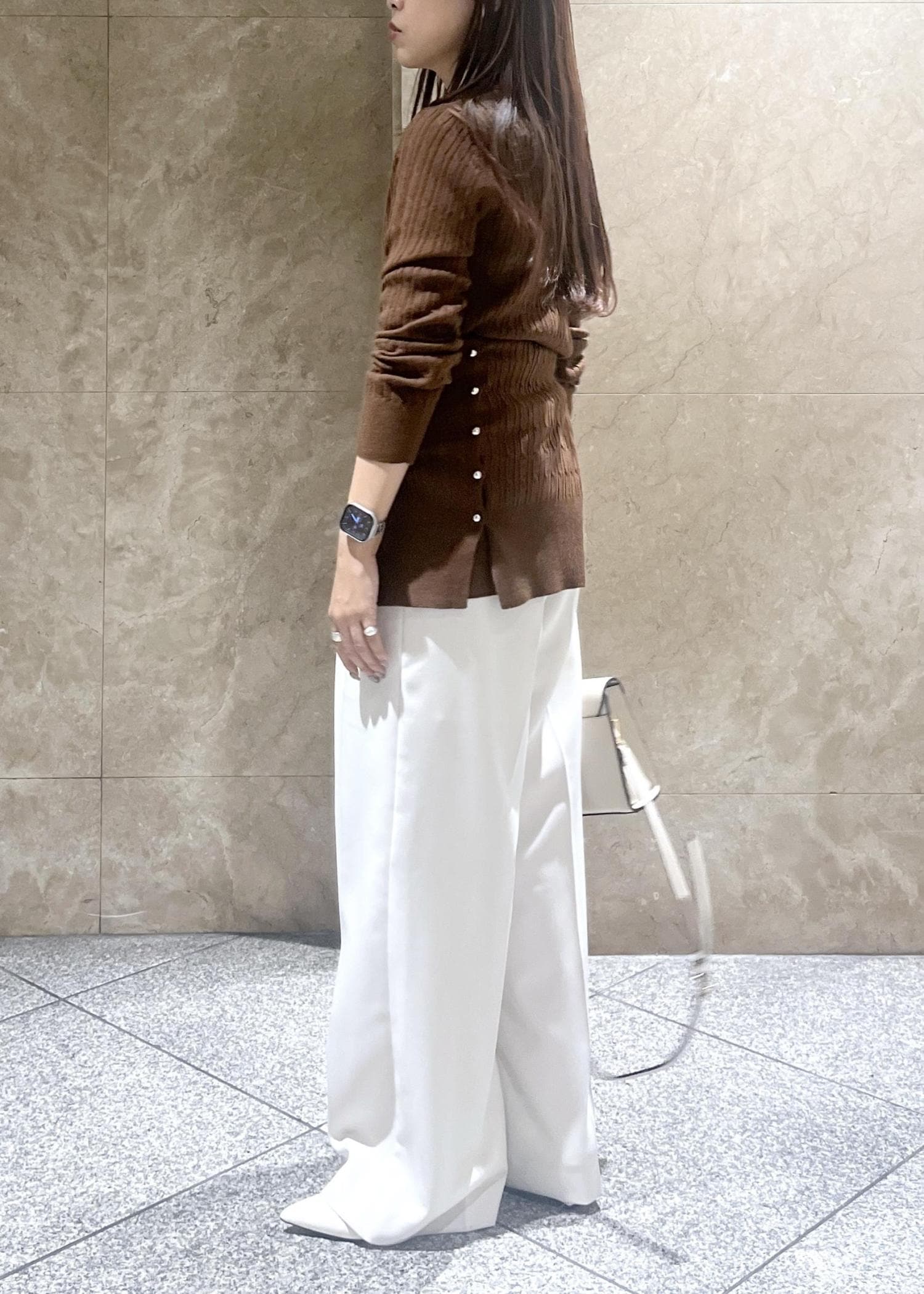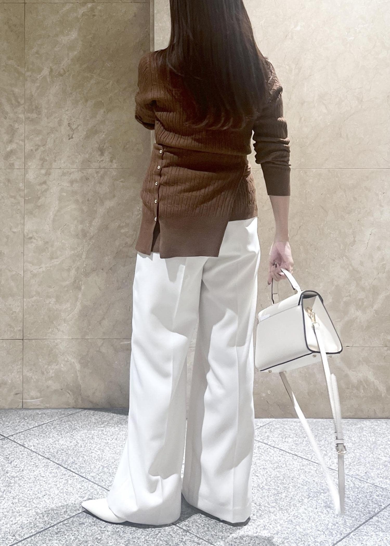どんなトップス、シーンにもマッチする、そして長く着られるサラっとした素材感なので、かなり重宝しそう、、! -