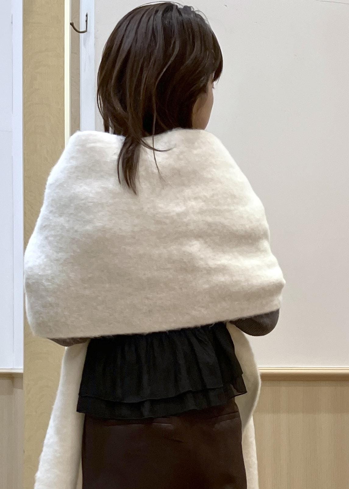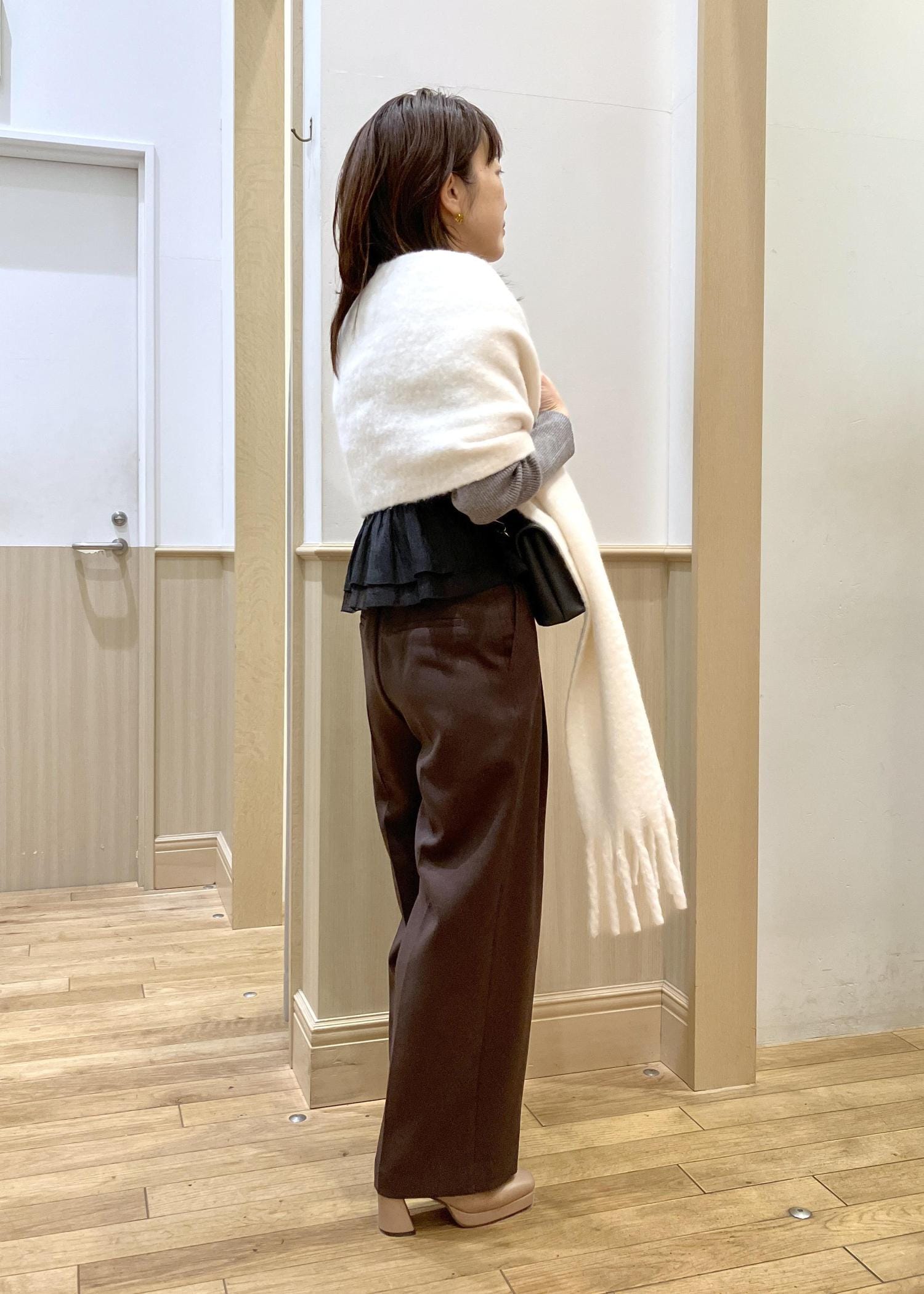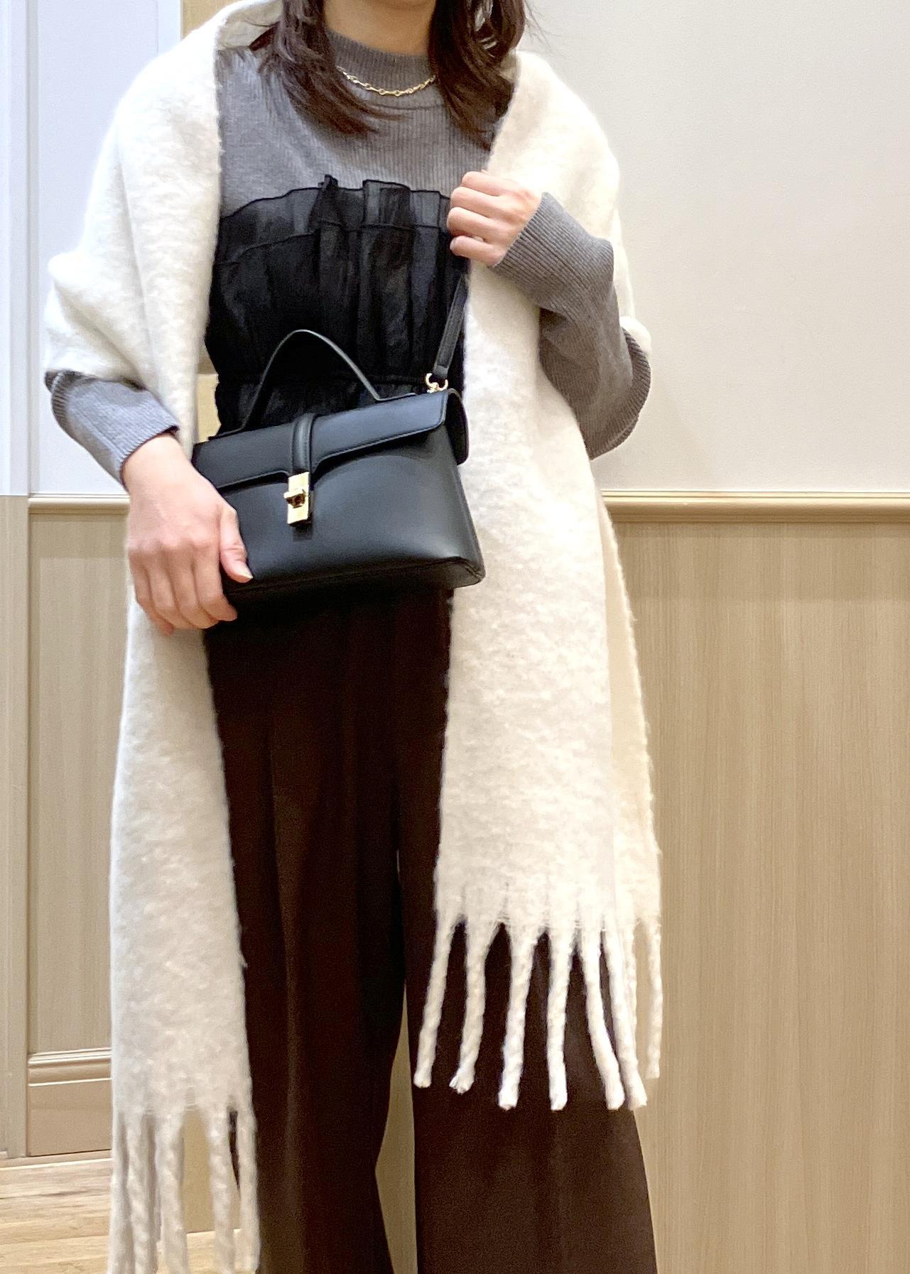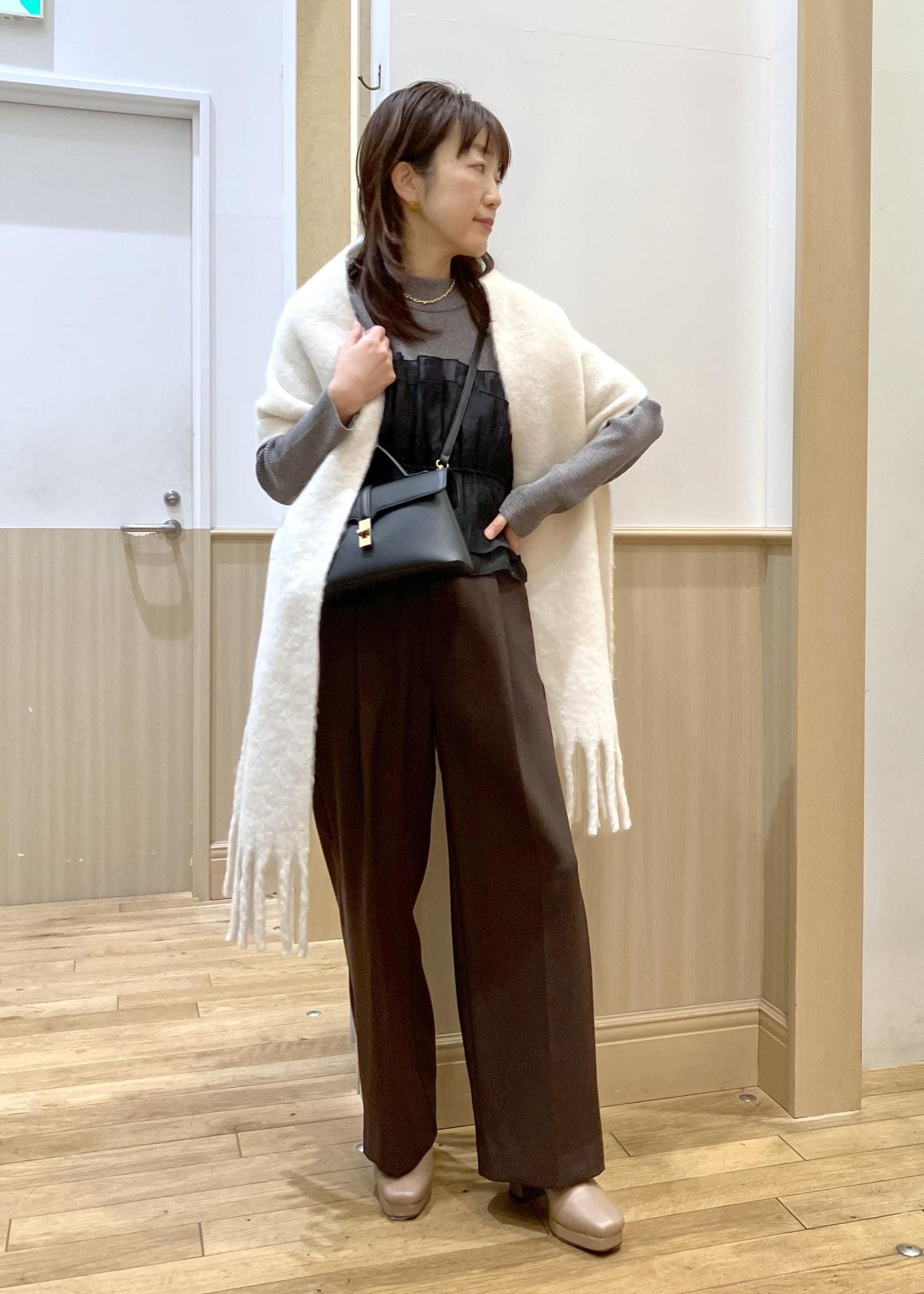 ストールも縦に降ろして縦ラインのスッキリ感を意識してます。