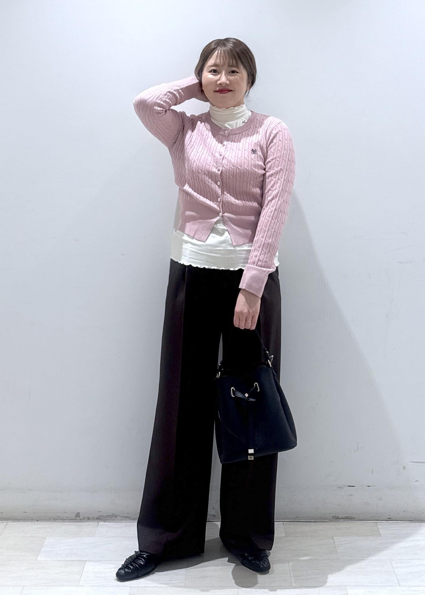 カラーが派手なピンクではないので、落ち着いた色味と合わせると緩和されて落ち着きますよ◎