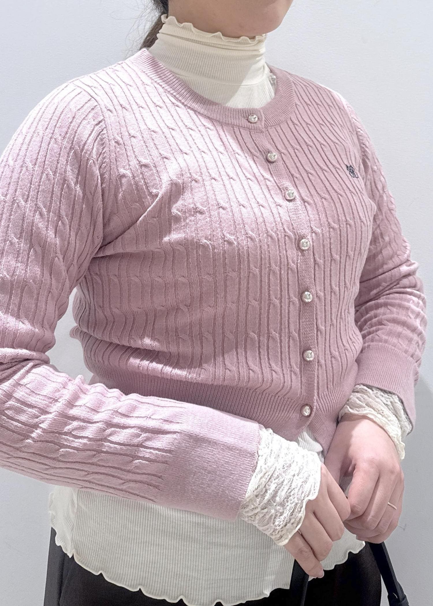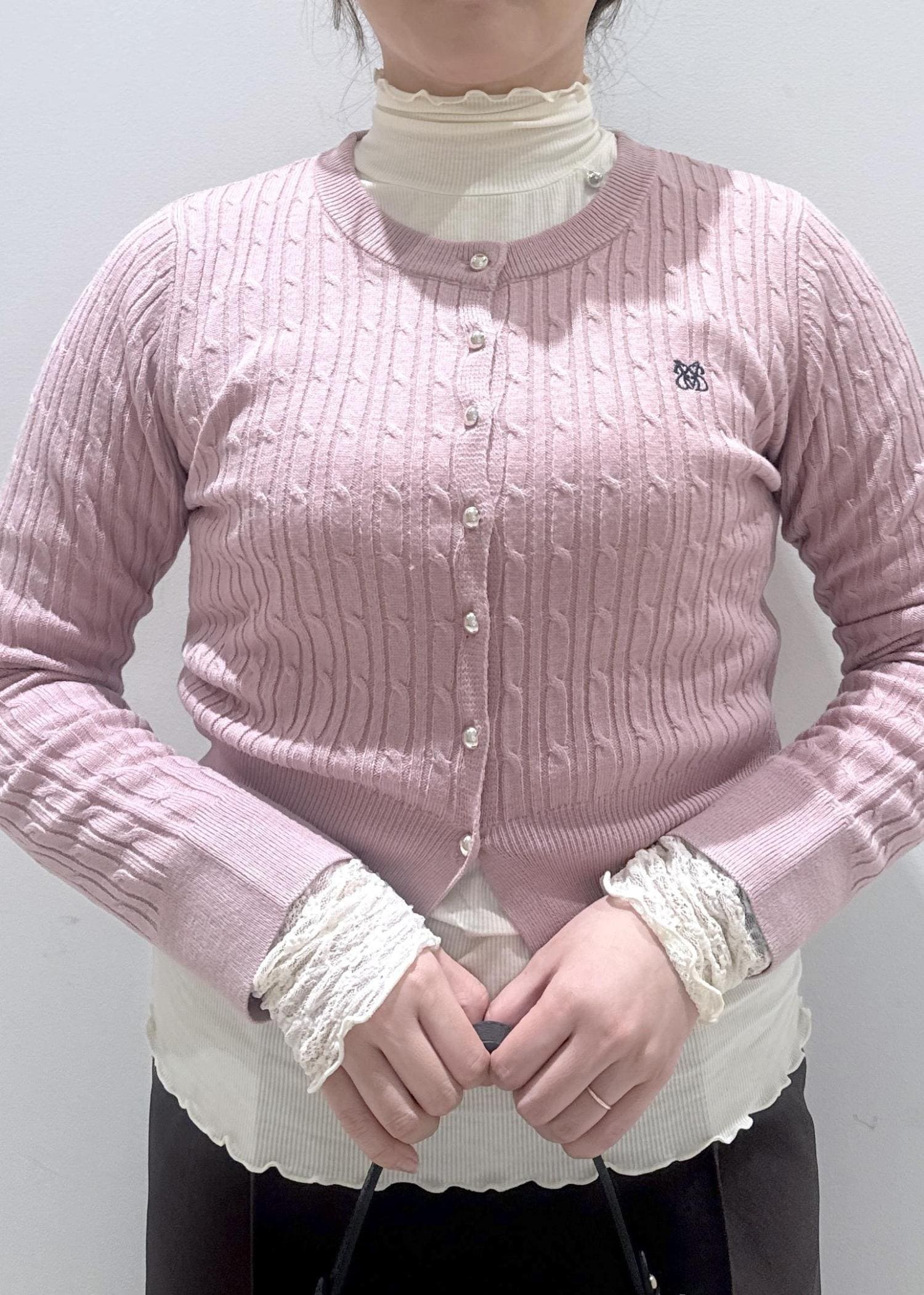 春まで使えるケーブルニットカーディガン