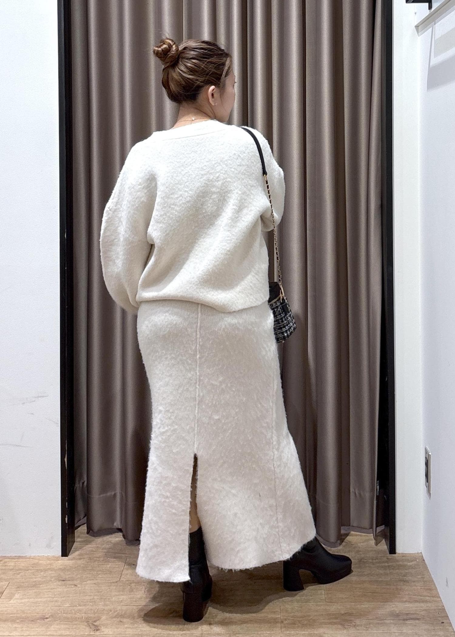 VISチェックアソートシャギーニットスカート/セットアップ対応オフホワイト / F¥6,589レビュー厚みのあるニットスカート!