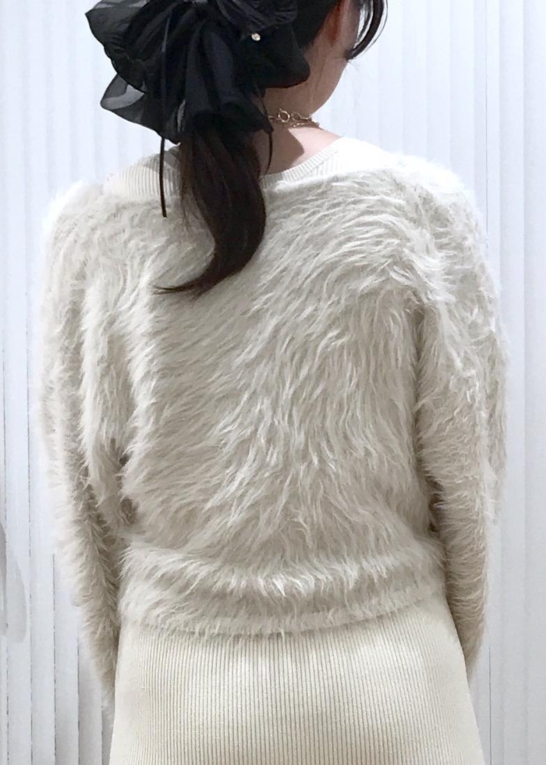 セットのニットトップスは、腕周りや胴回りはゆったりしていてチクチク感は無く柔らかい素材感です。