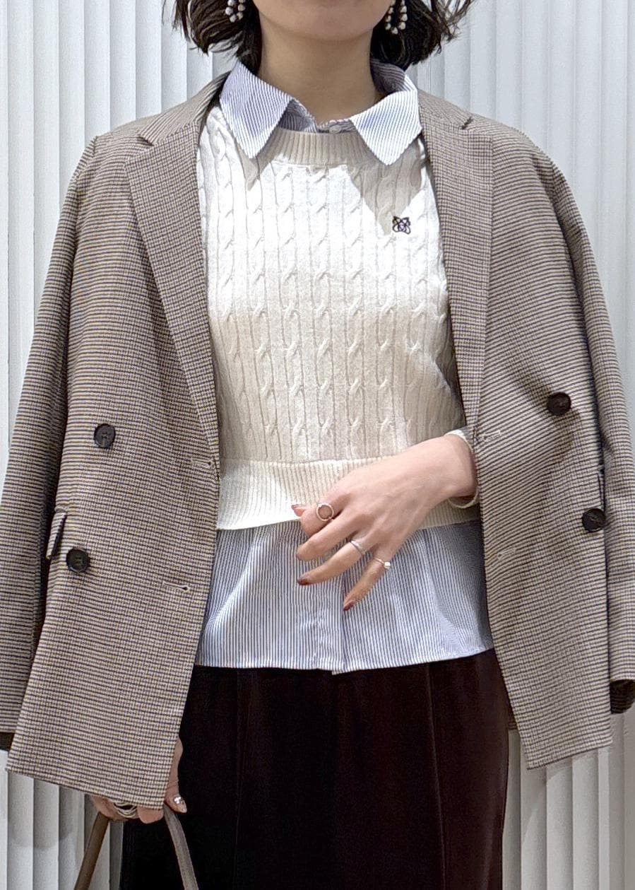 ミニケーブル編みが可愛い♡シャツをレイヤードしてるみたいな楽ちんタイパ服♫