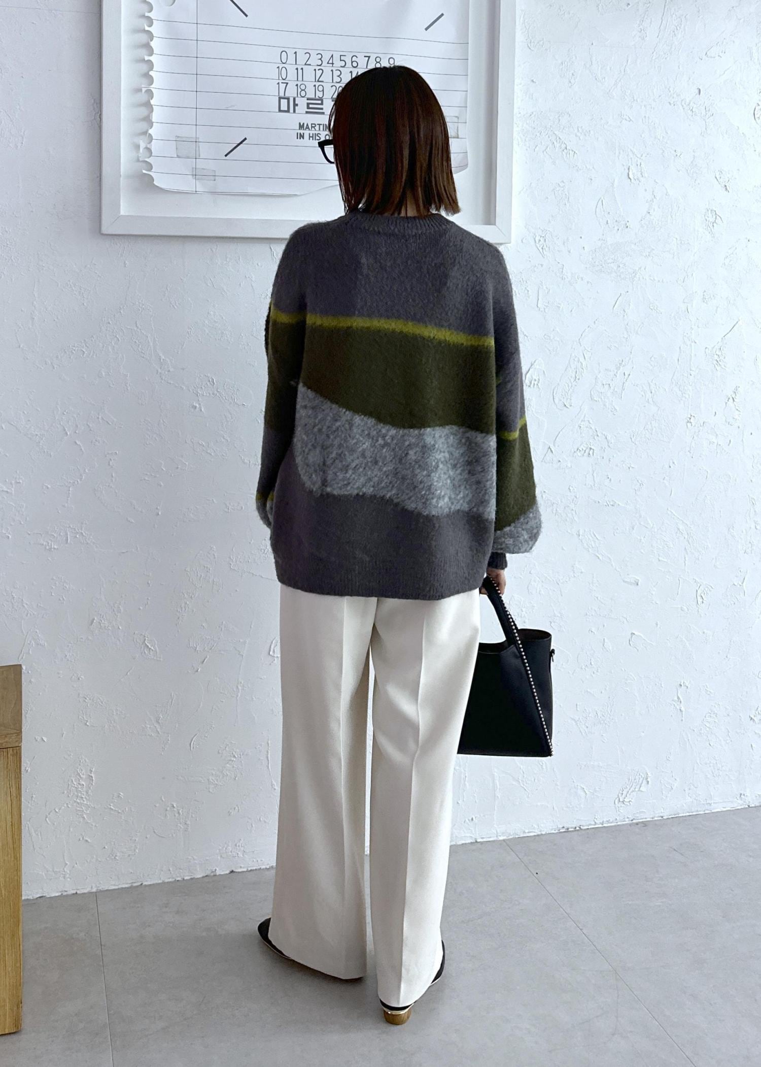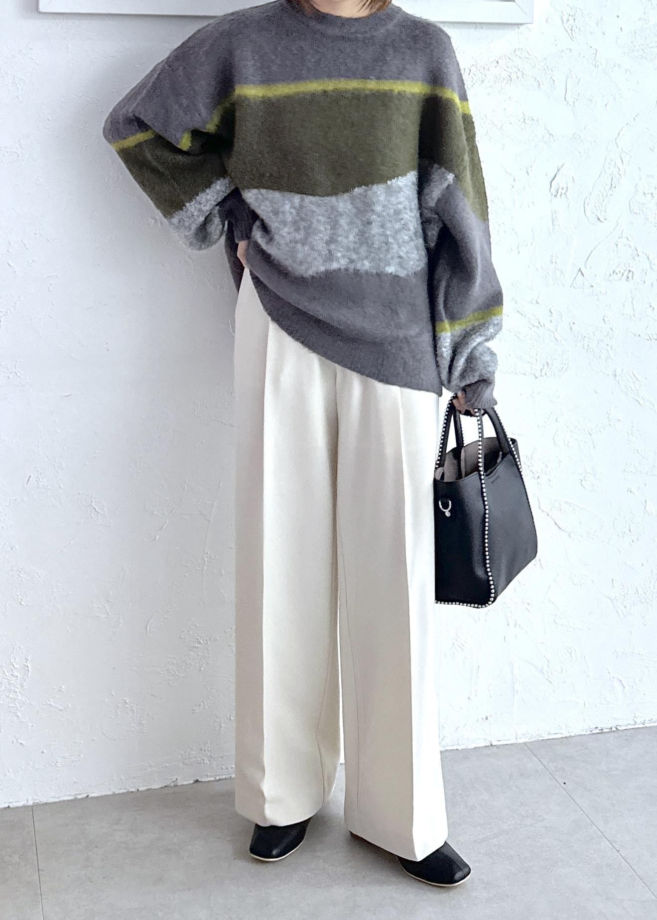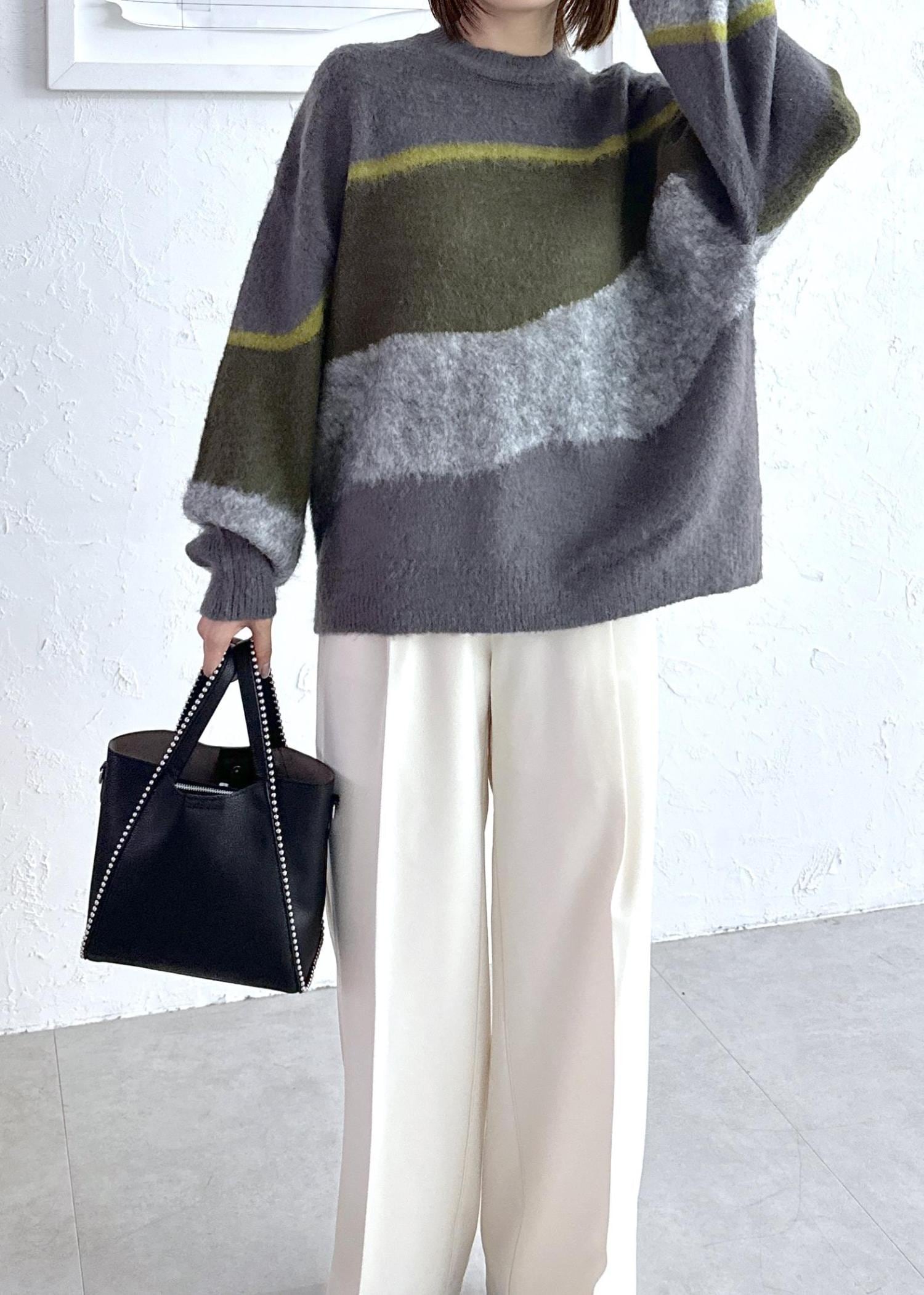 VIS【WEB限定】グラデーションインターシャ起毛ニットチャコール / F¥5,535レビューグレー×カーキの配色が印象的な主役ニット。