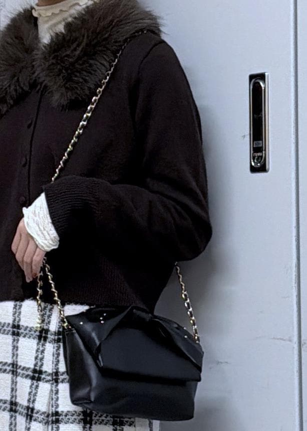 VISリボンハンドルチェーンショルダーバッグ/2WAYブラック / F¥5,929レビューリボンの部分に手を入れることができるのでクラッチバックにもなります◎