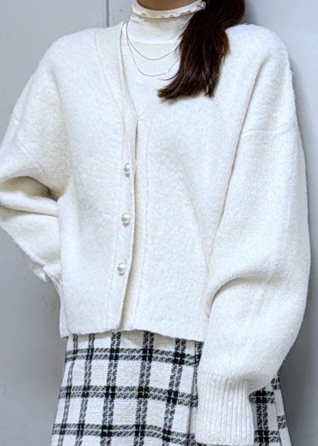 VISチェックアソートシャギーニットカーディガン/セットアップ対応ネイビー / F¥6,589レビューボタンパールが上品なカーディガンとなっております。