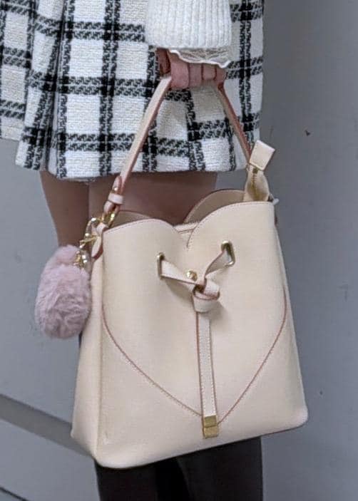ハートのデザインがとっても可愛く、ショルダーにもできるので使いやすいバックになっています♪ -