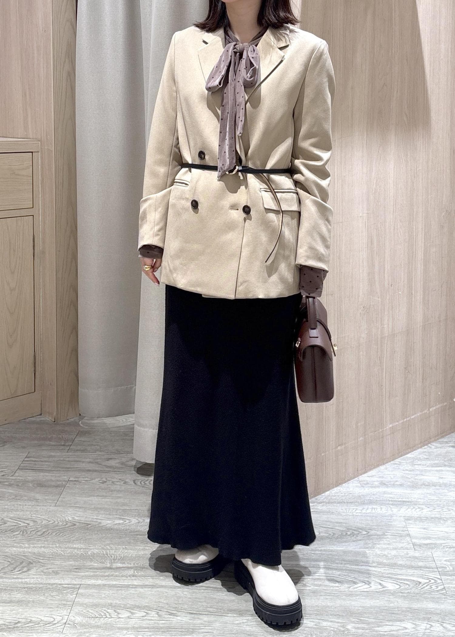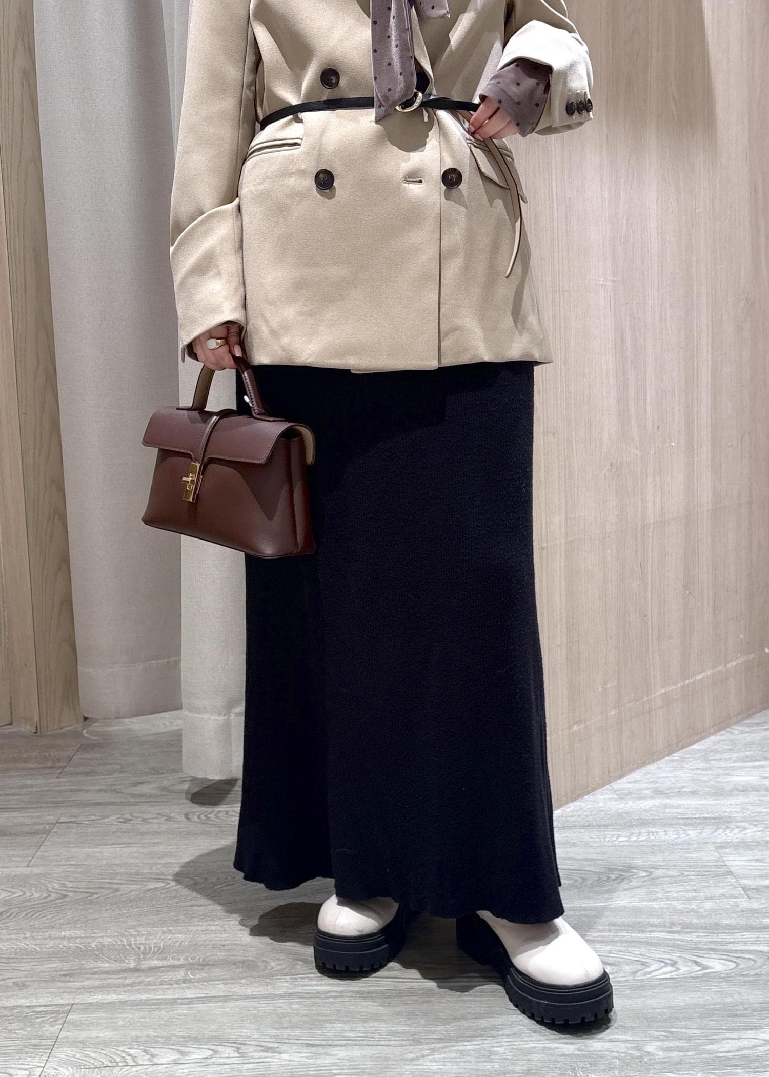膝上まで裏地がついており、暖かいです◎ -