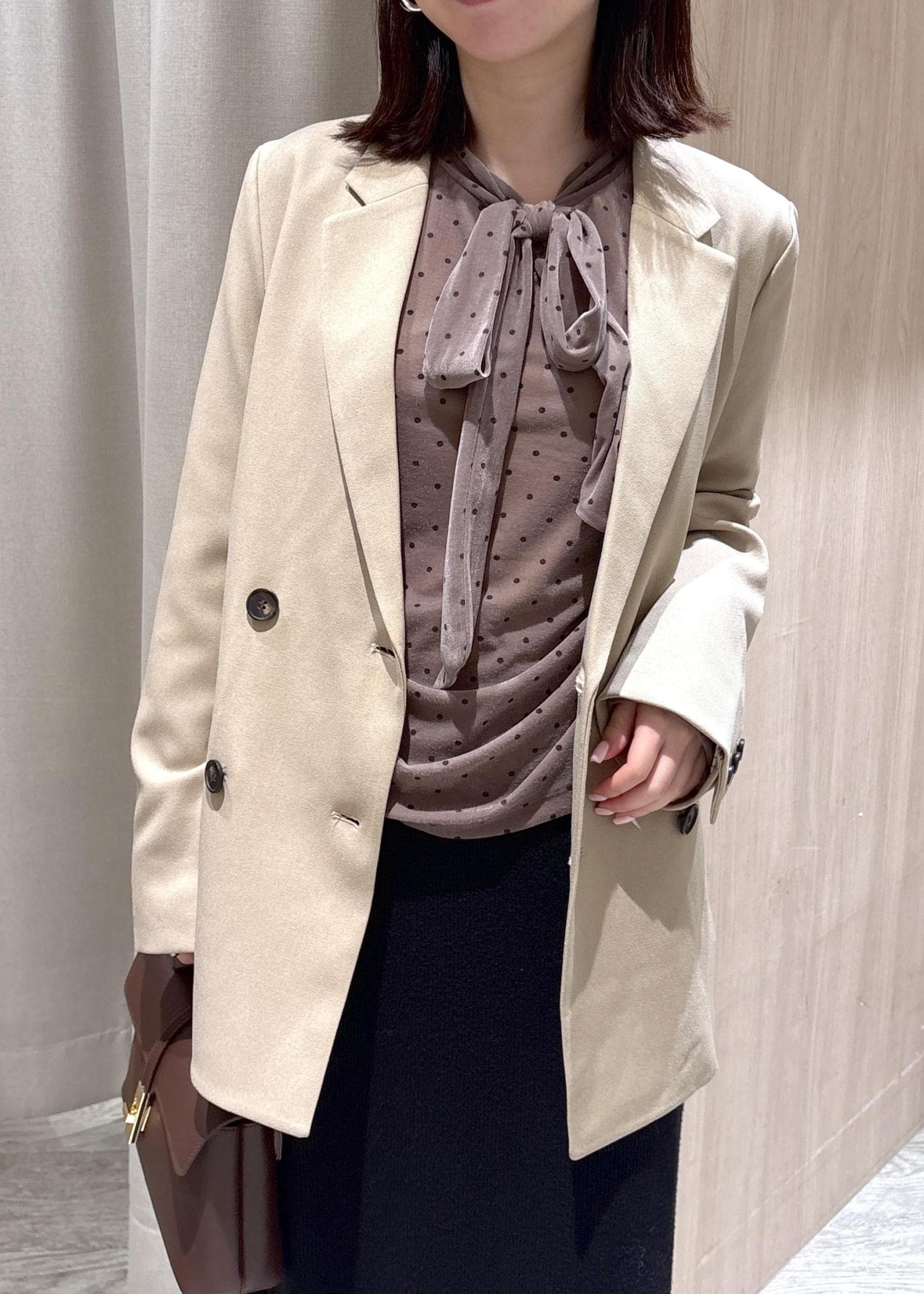 VIS【美easy】ウーリッシュダブルブレストテーラードジャケット【セットアップ対応/洗える】ベージュ / M¥8,899レビューSサイズでお尻もしっかり隠れる丈感。