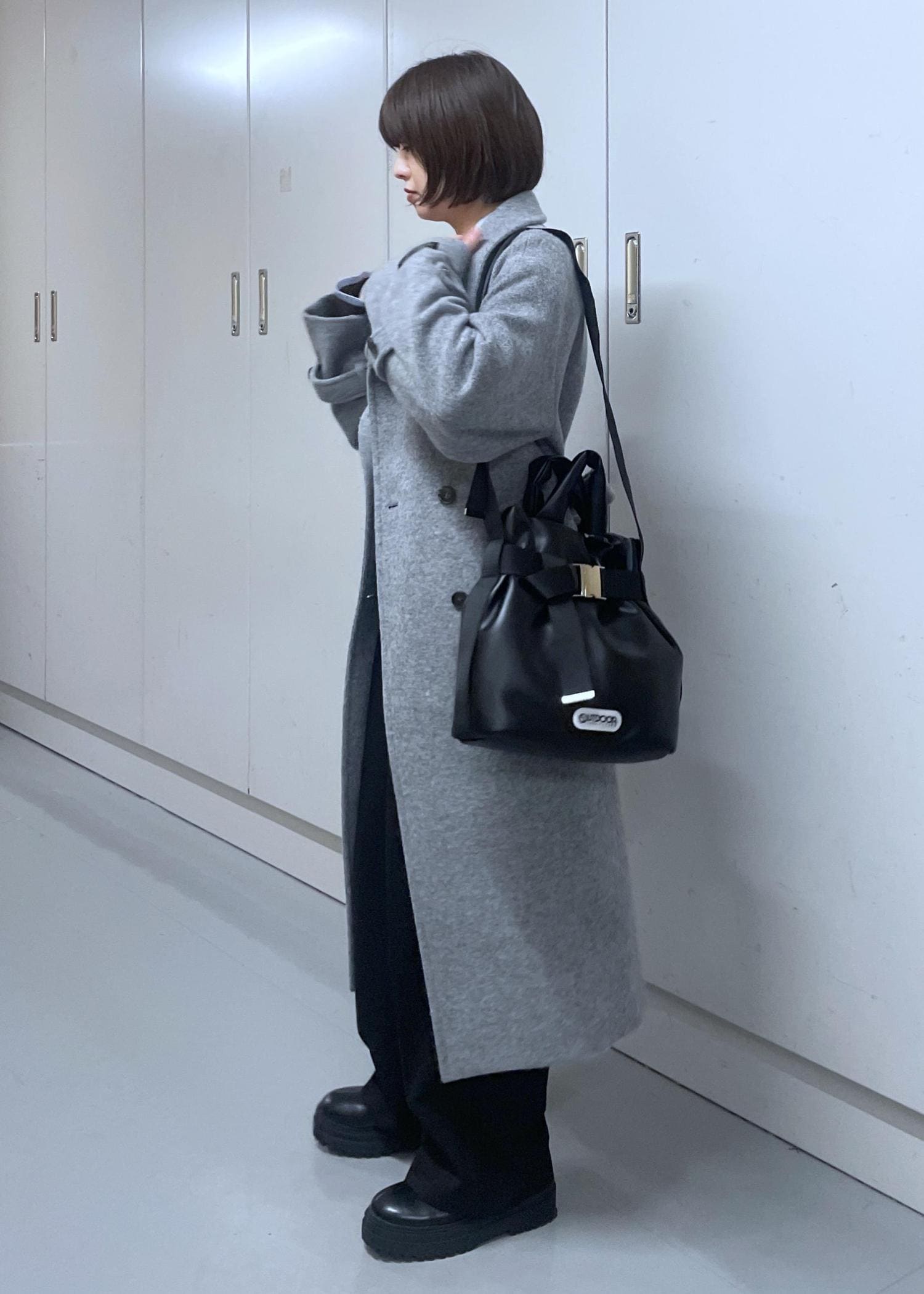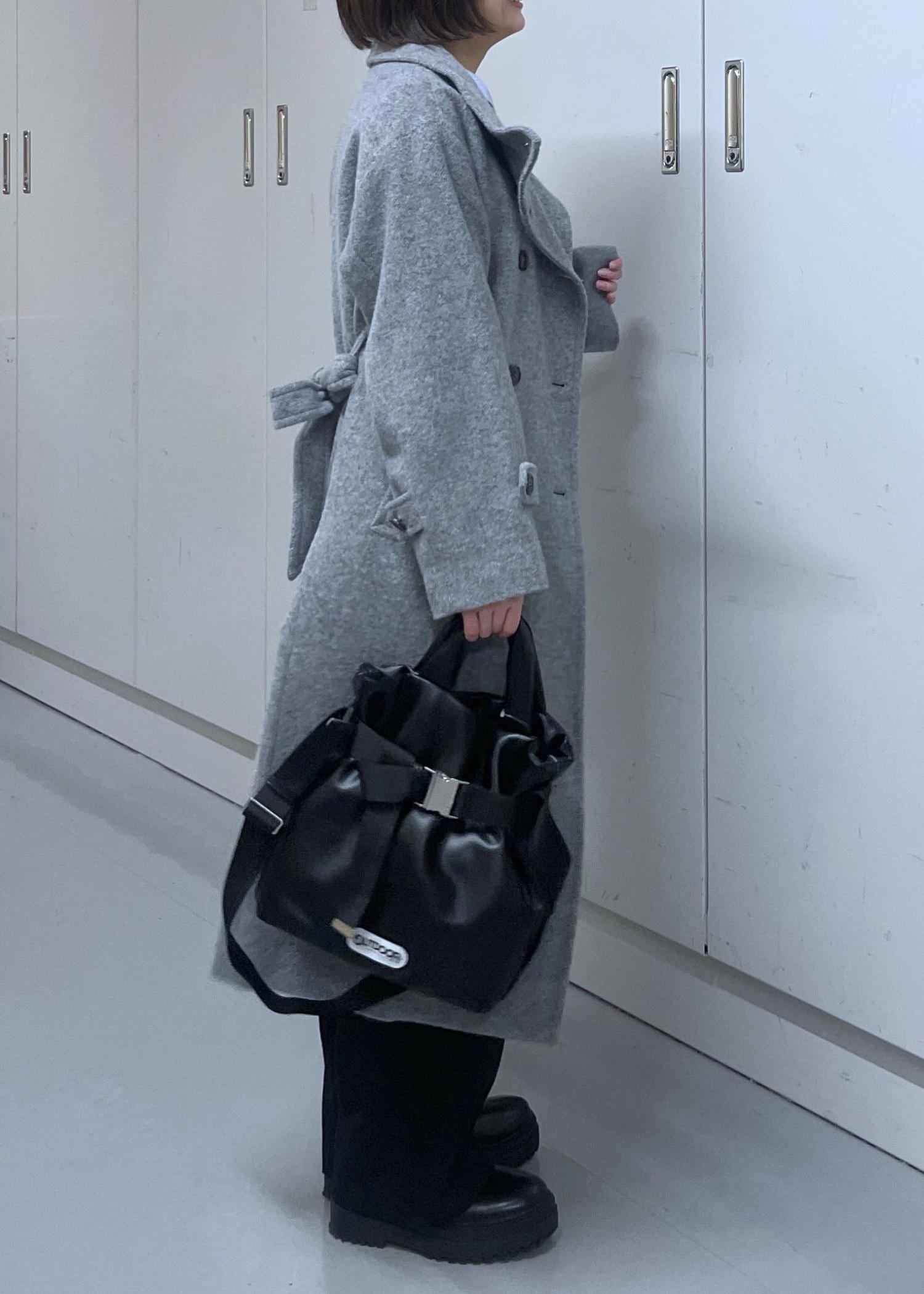 ブラックは少し光沢感のある柔らかいお素材感なので、オールブラックでもハードになり過ぎないデザインです。