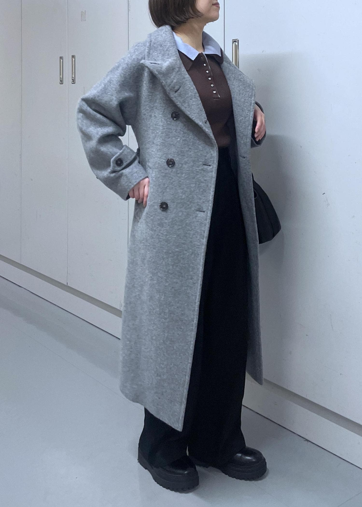 Sサイズでも肩周りやアームにゆとりがあり、ニットの上からも羽織りやすいです。