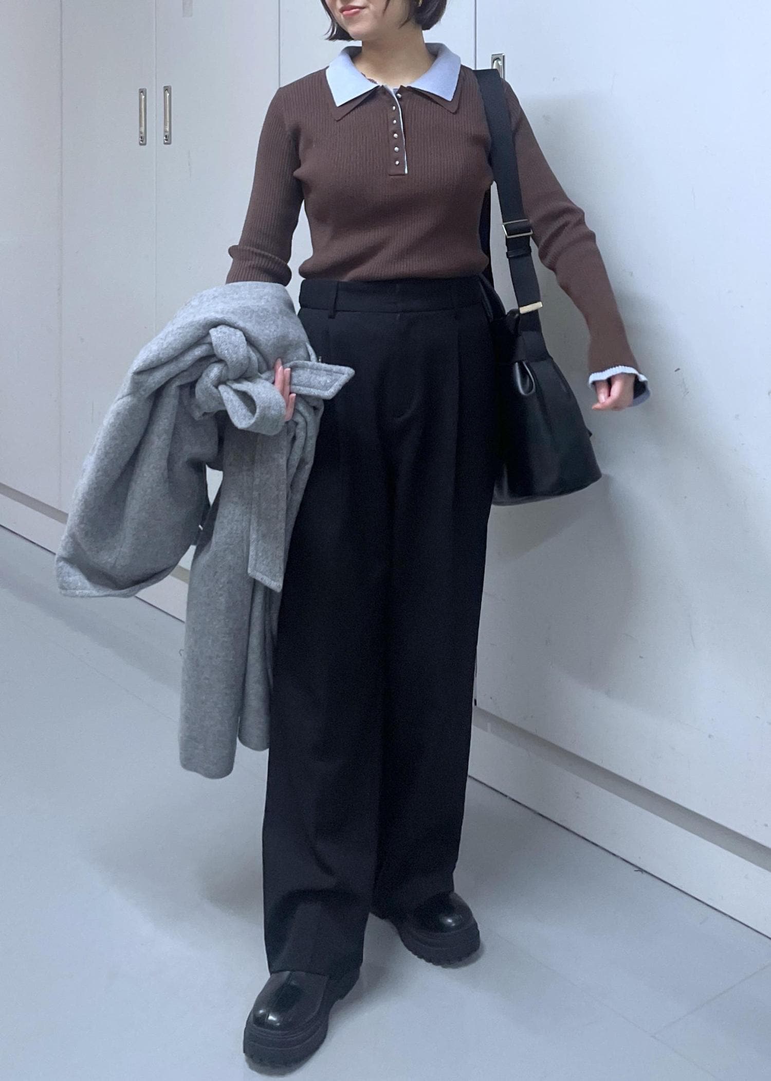 VISダブルカラーポロニットトップスブラウン / F¥5,929レビュー伸縮性あるニットでチクチク感なく着用できます。