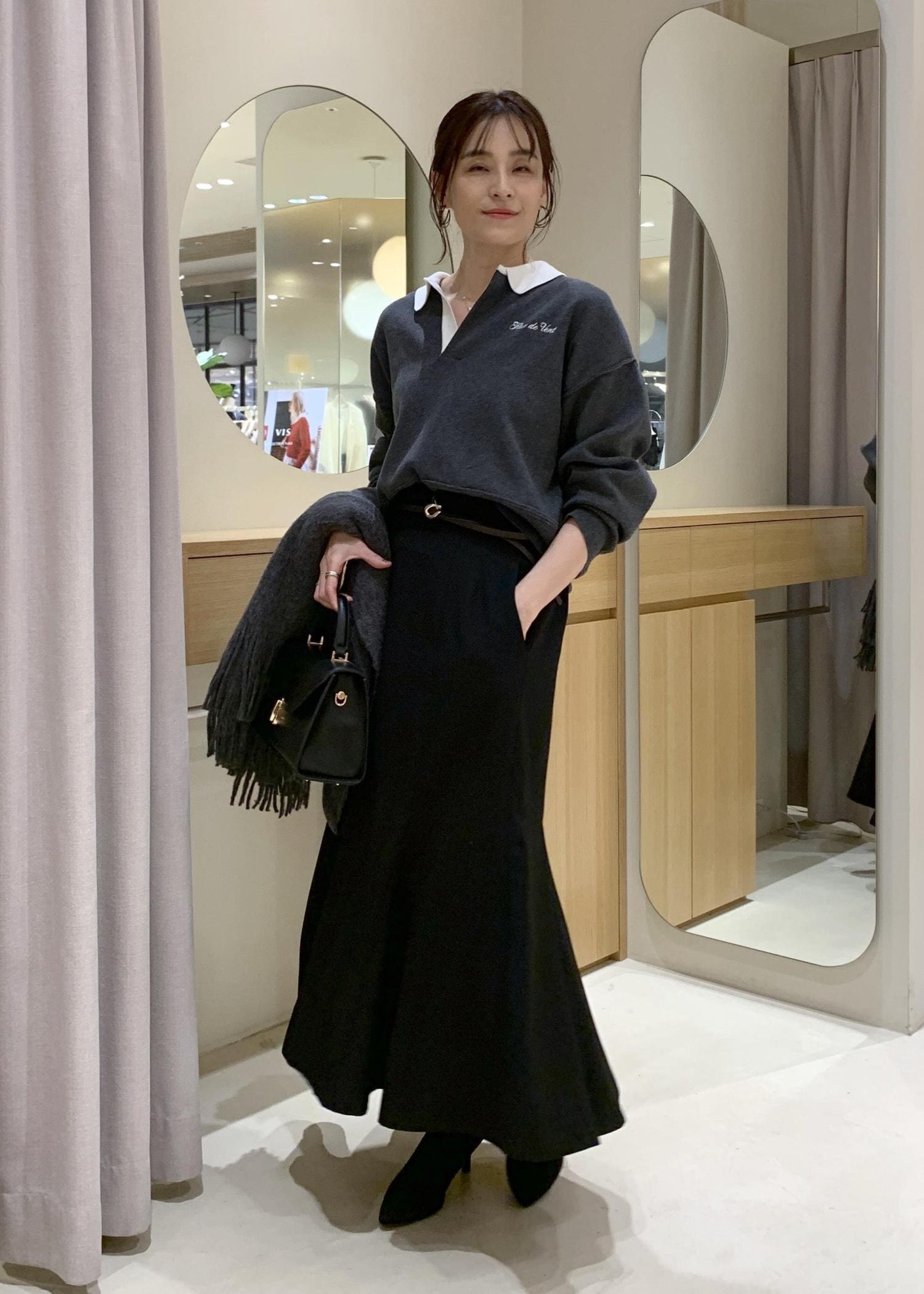 インしなくてもウエスト周りはスッキリ見えになります。子供っぽくならずに着れるポロ襟ニットです。 -