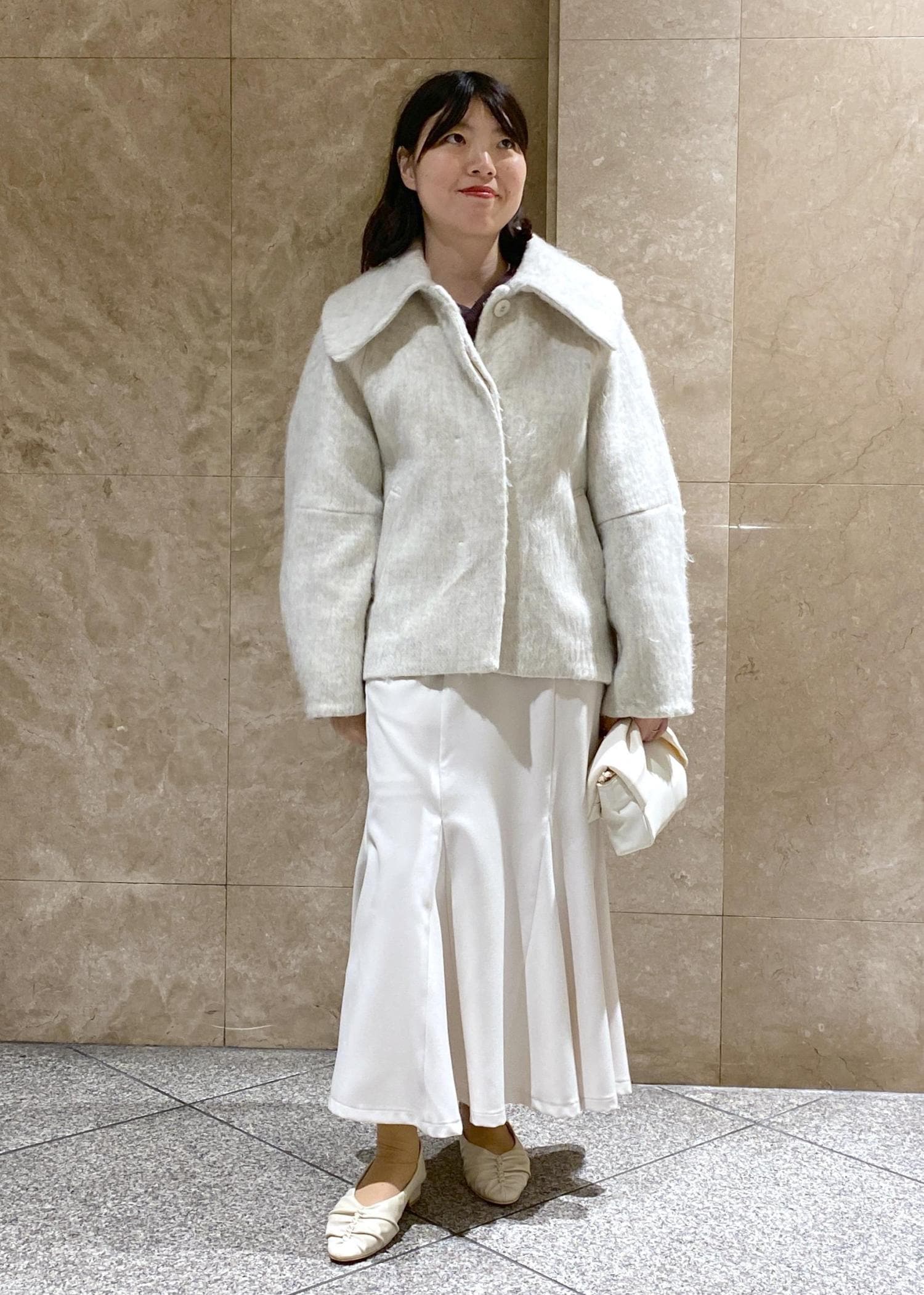VIS【アウター総選挙1位】ビッグカラーモモンガシャギーショートコートオフホワイト / S¥10,989レビュー身長150cmでSサイズを着用し、お尻が隠れるぐらいの丈感でした!