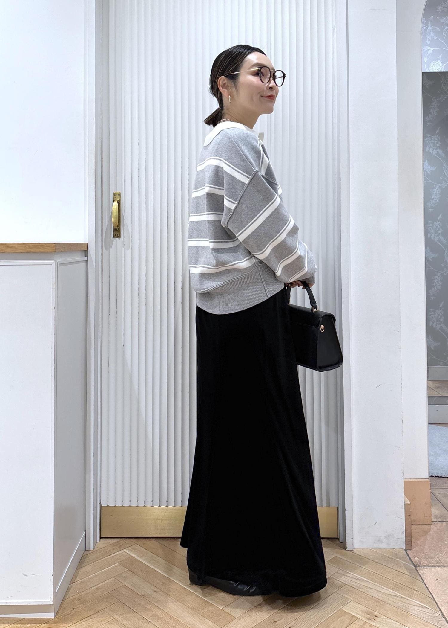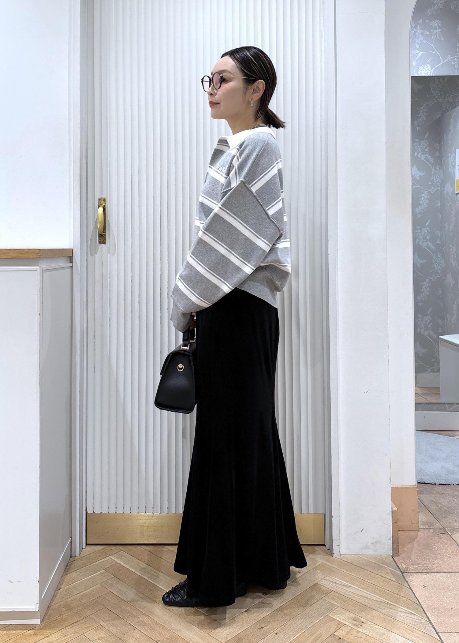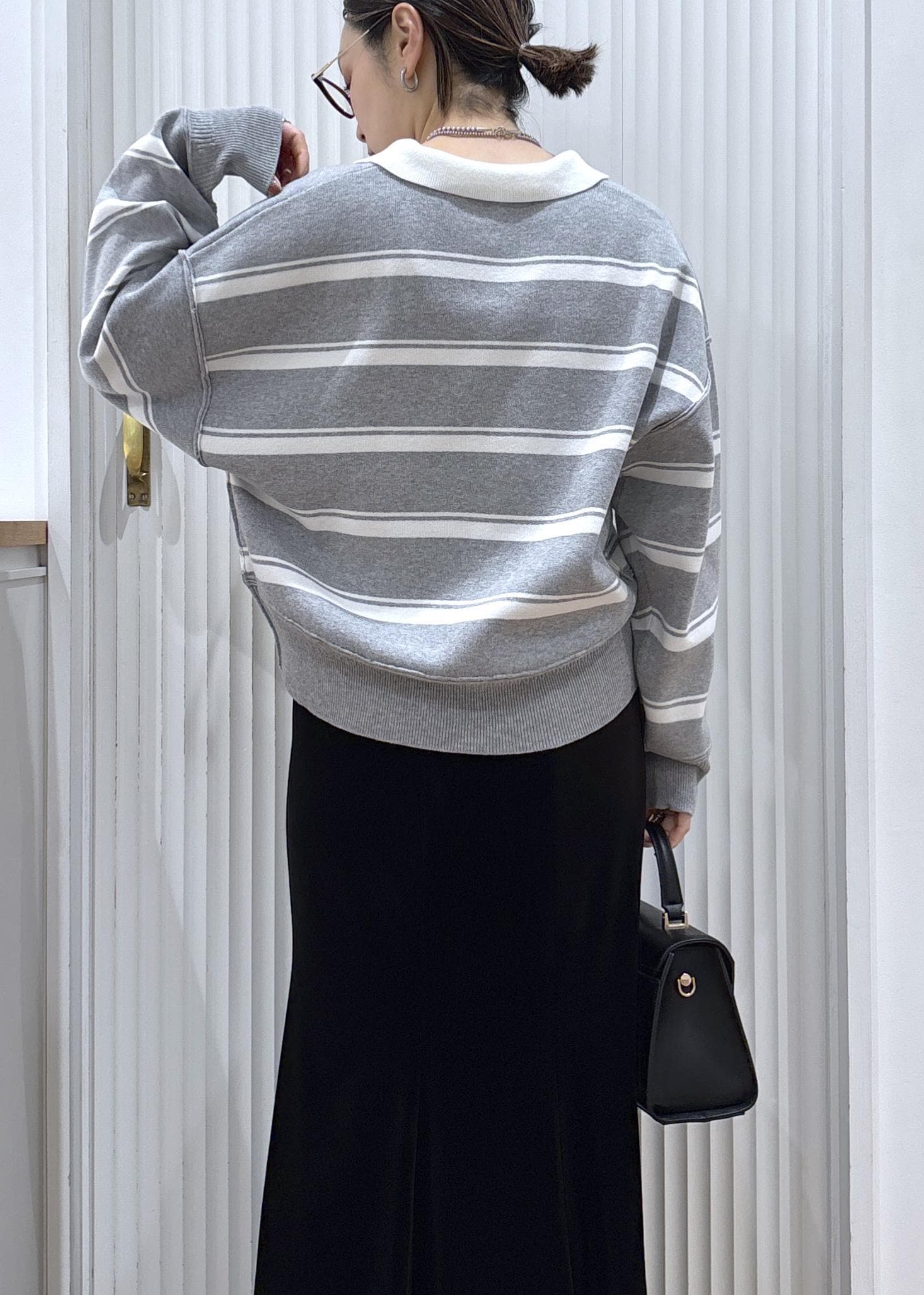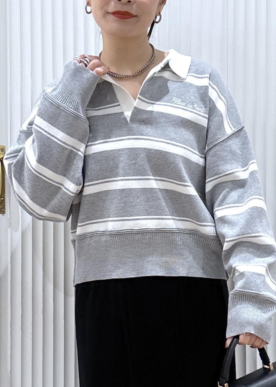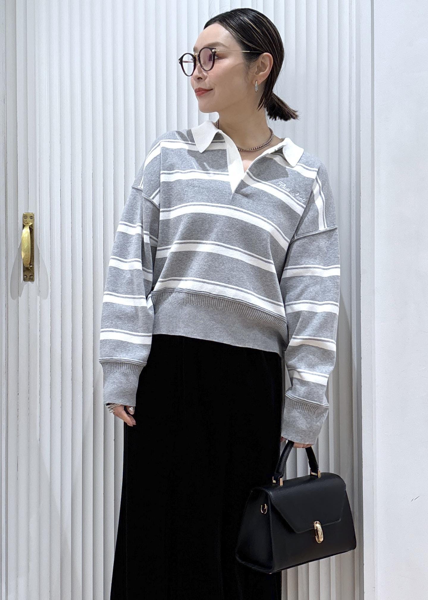 スキッパーポロニットでトレンドコーデ