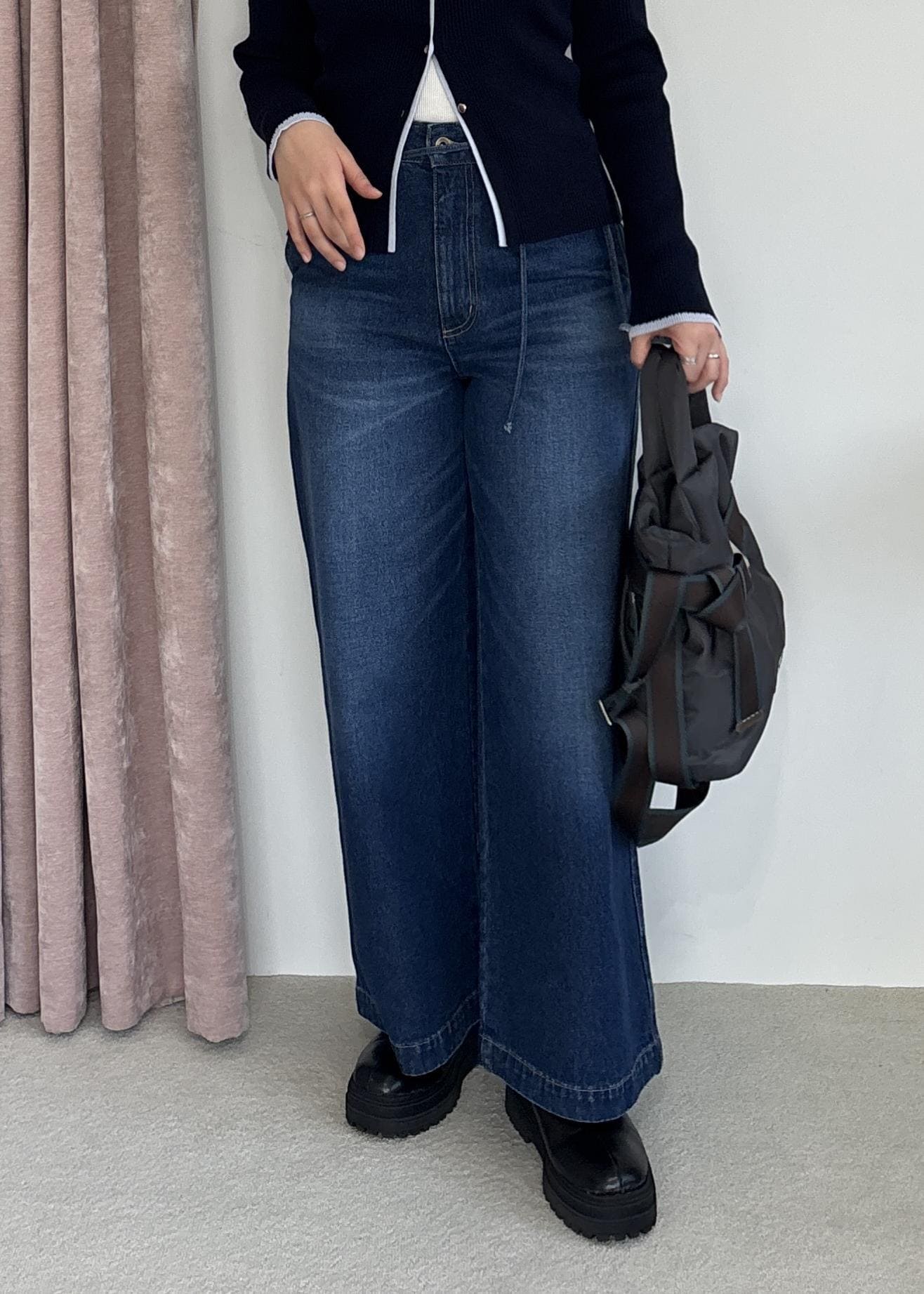 NEW! 予約VISワイドシルエットベルト付きデニムブルー / M¥8,899レビュー165cmでMサイズ着用、くるぶし上あたりの丈感です。