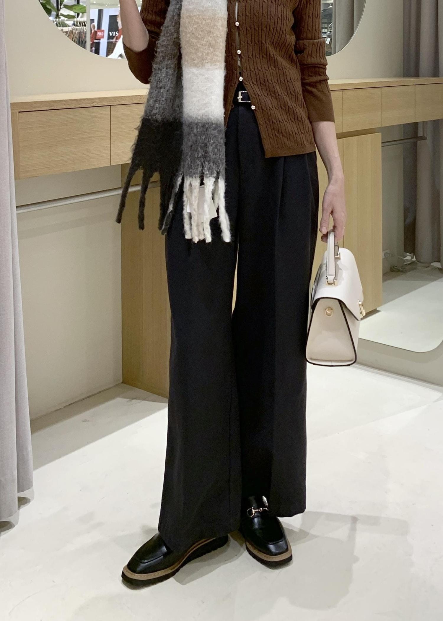 VIS起毛ウールライク版ベルトディテールタックワイドパンツスミクロ / M¥5,271レビュー冬にちょうど良い肉厚感です。