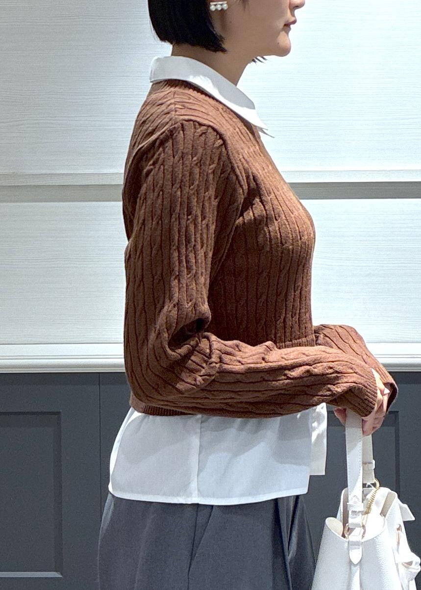 NEW!VIS【美得】ハイゲージケーブシャツドッキングプルオーバーダークブラウン / F¥5,489レビュー身長168センチで腰にかかる着丈です!