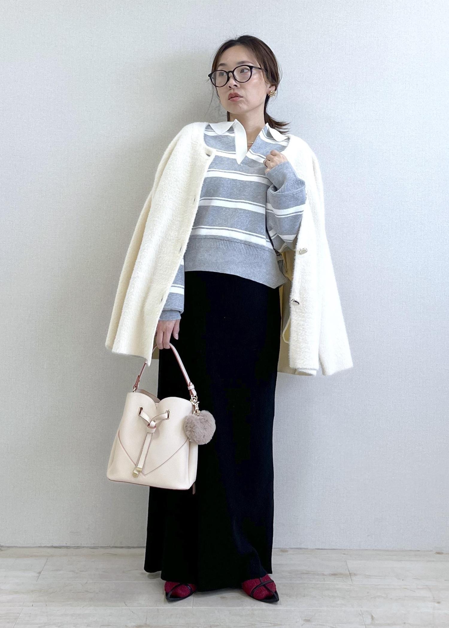 152cmでFサイズ着用し、着丈はお尻が隠れるくらいのミドル丈。昨年も大人気ニットアウターです。昨年もリアルバイしましたが、使い勝手よくおしゃれに高見えしてくれます。肌馴染みがとても良く品よく仕上げてくれたのでイエローもお買い上げ決定しました!