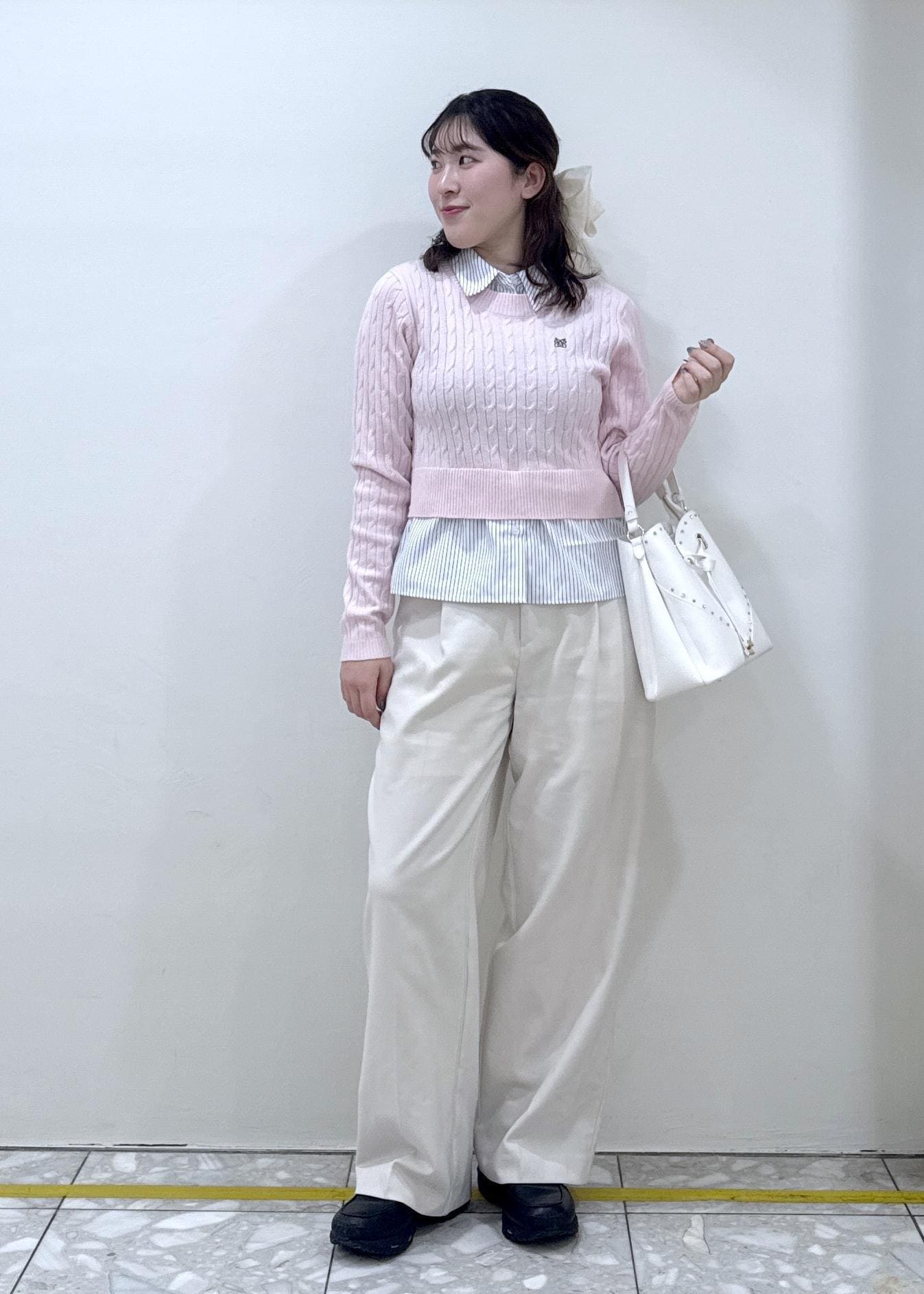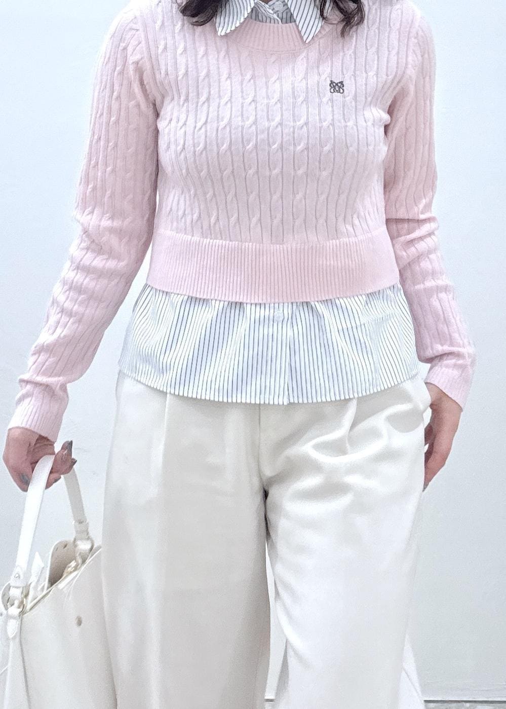 NEW!VIS【美得】ハイゲージケーブシャツドッキングプルオーバーピンク / F¥5,489レビューレイヤード風で1枚でオシャレ見え!