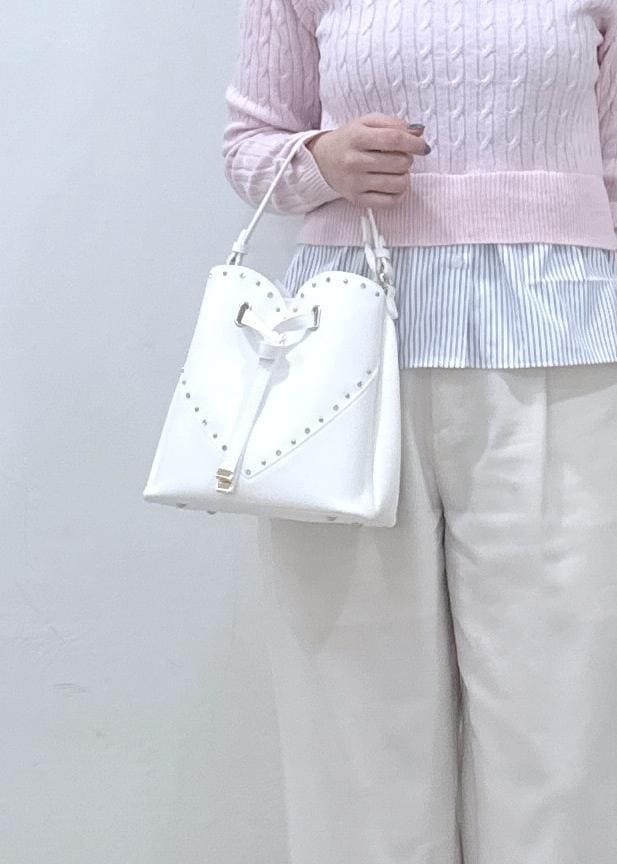 VISラインストーン&スタッズハートカットバッグオフホワイト / F¥7,909レビュー大人気のハートカットバックにスタッズデザイン登場!