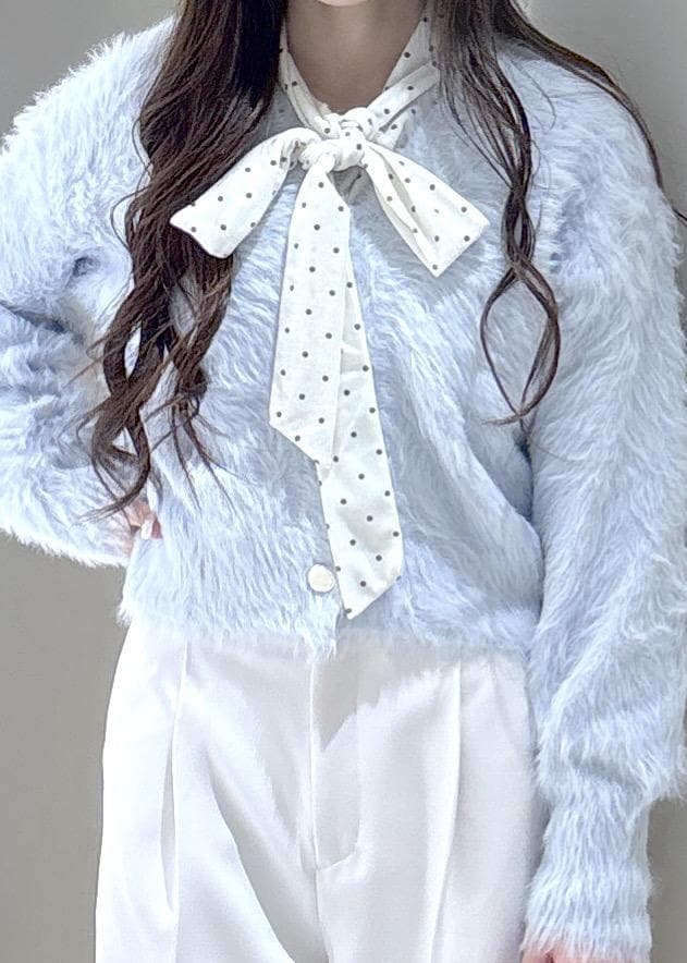 VISベロアボウタイドットカットソーオフホワイト / F¥4,389レビューベロア生地のドットのリボンタイになっていて、シンプルのニットの下に着たりすると一気に雰囲気が変わって可愛く着れます。