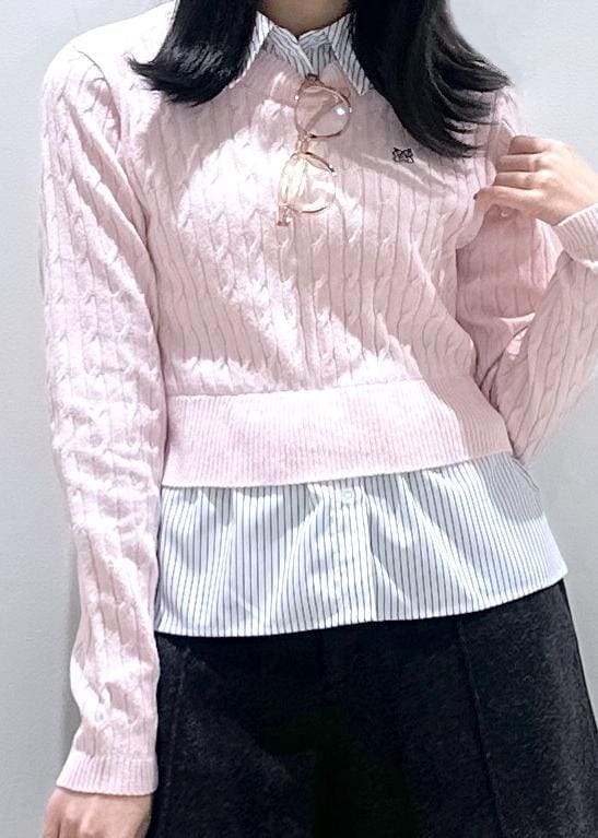 NEW!VIS【美得】ハイゲージケーブシャツドッキングプルオーバーピンク / F¥5,489レビューニットとシャツがドッキングになったトップスはテクニック要らずでこなれ見えする優秀アイテム!